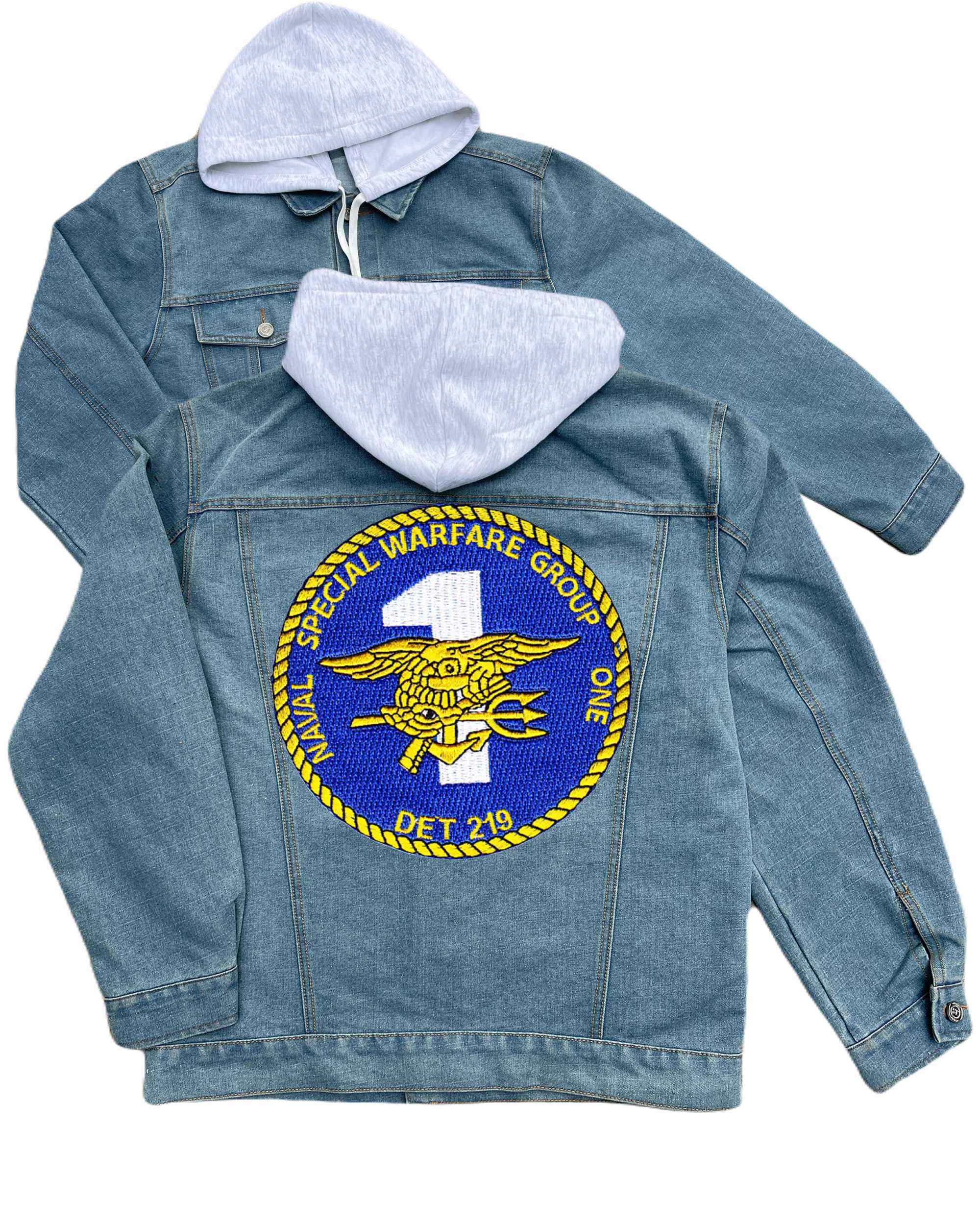 Nuclear Power School Bainbridge Maryland Embroidered Hood Jean Jacket