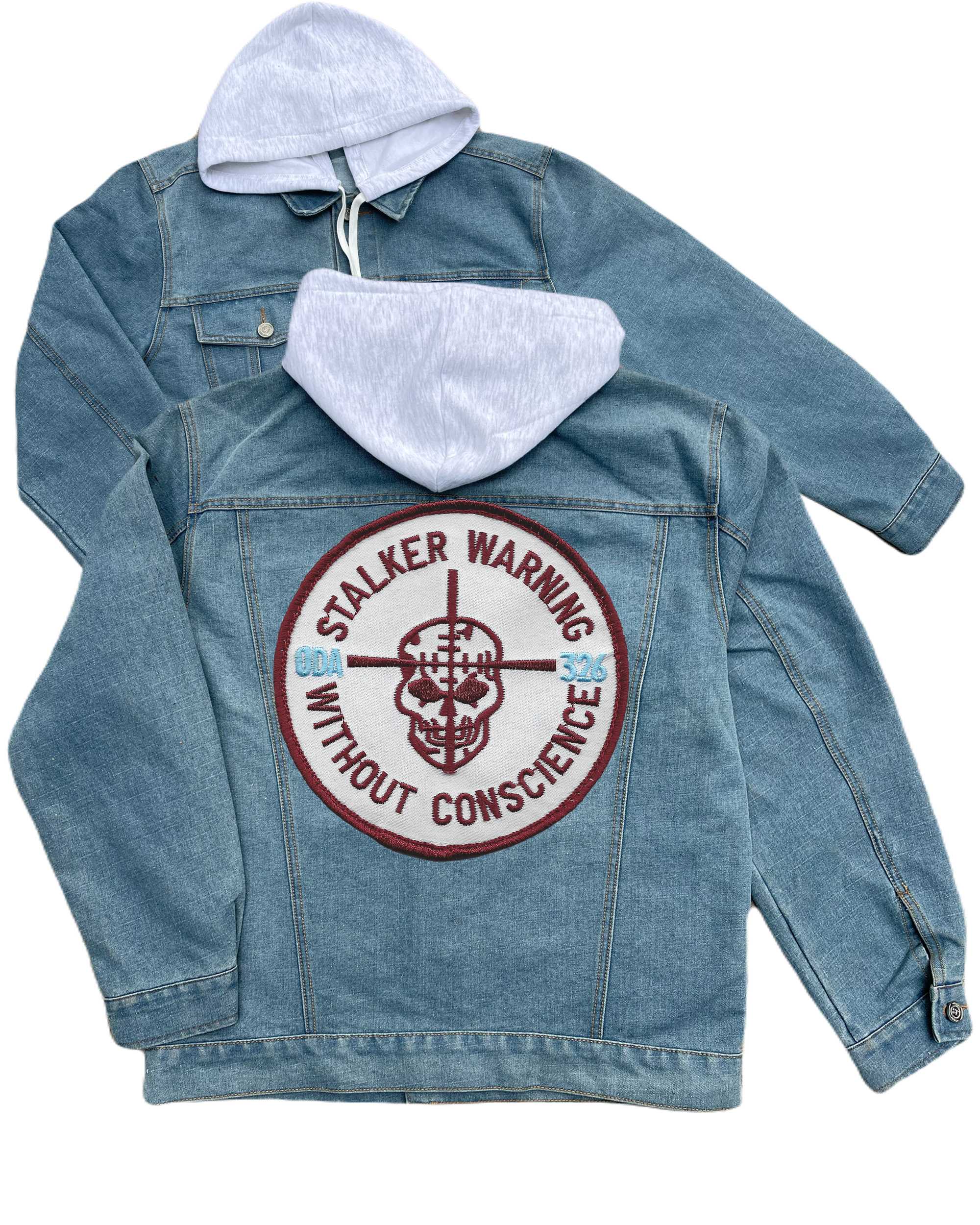 Oda 326 Stalker Warning Without Conscience Embroidered Hood Jean Jacket