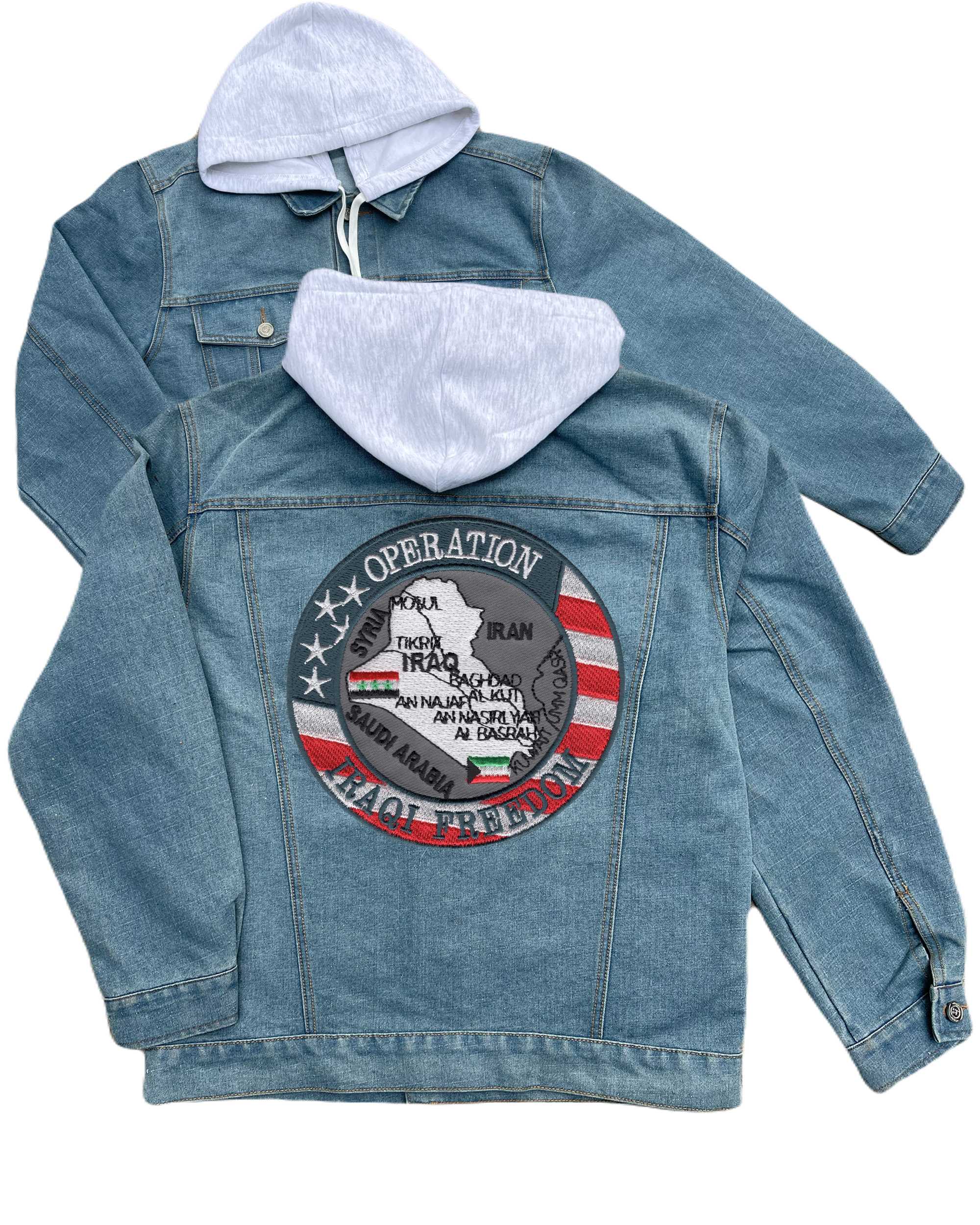 Operation Iraqi Freedom Embroidered Hood Jean Jacket Stars And Stripes