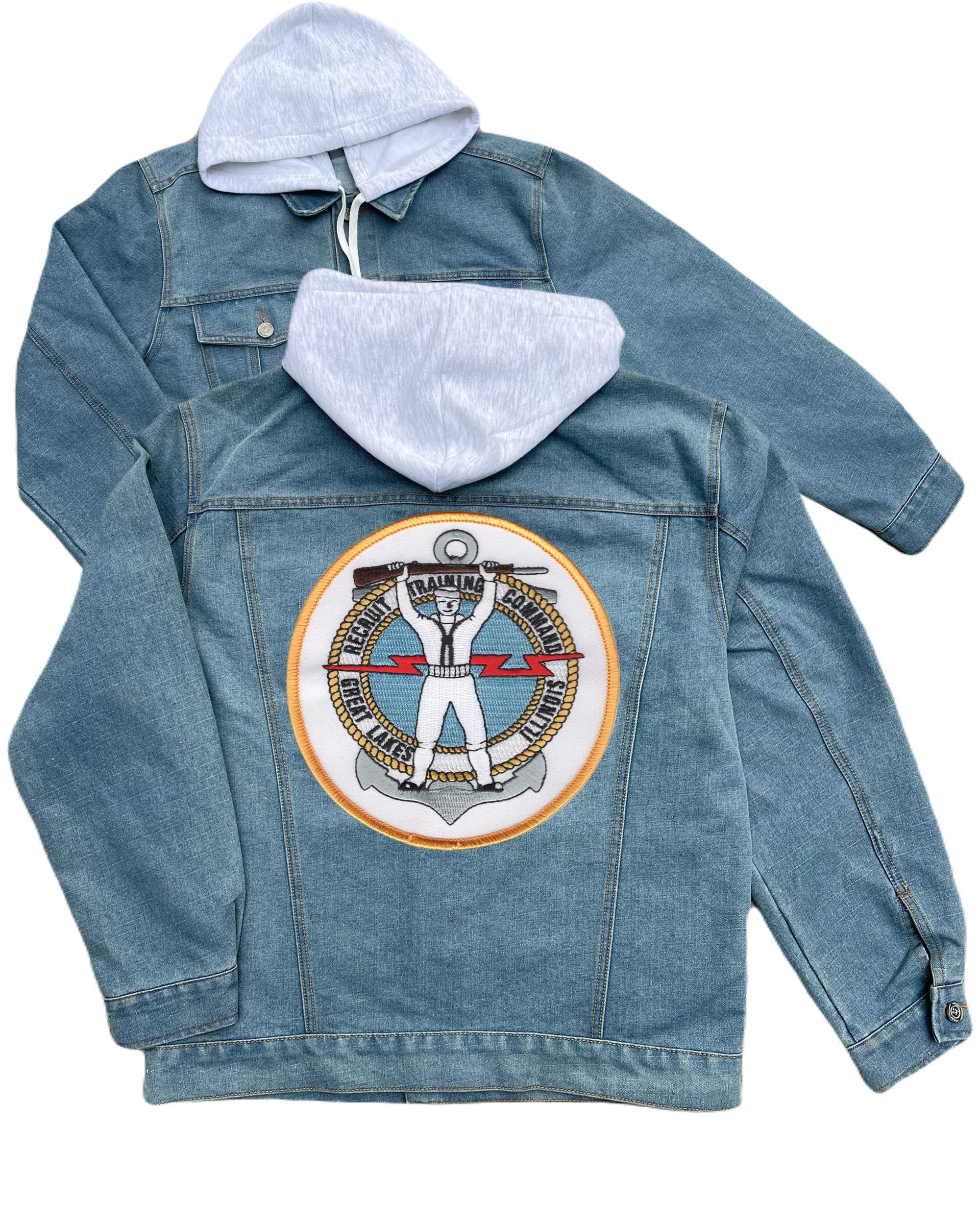 Recruit Training Command Great Lakes Illinois Sailor Embroidered Hood Jean Jacket