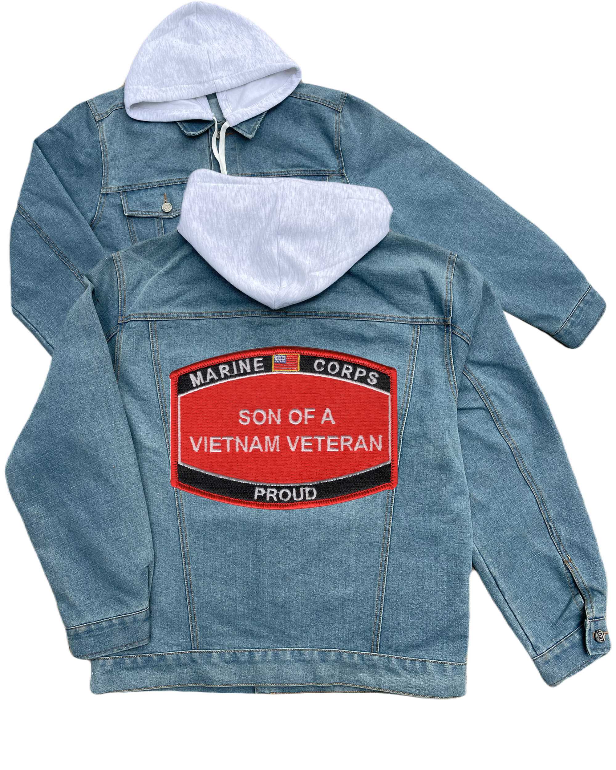 Son Of A Vietnam Veteran Embroidered Hood Jean Jacket Usmc