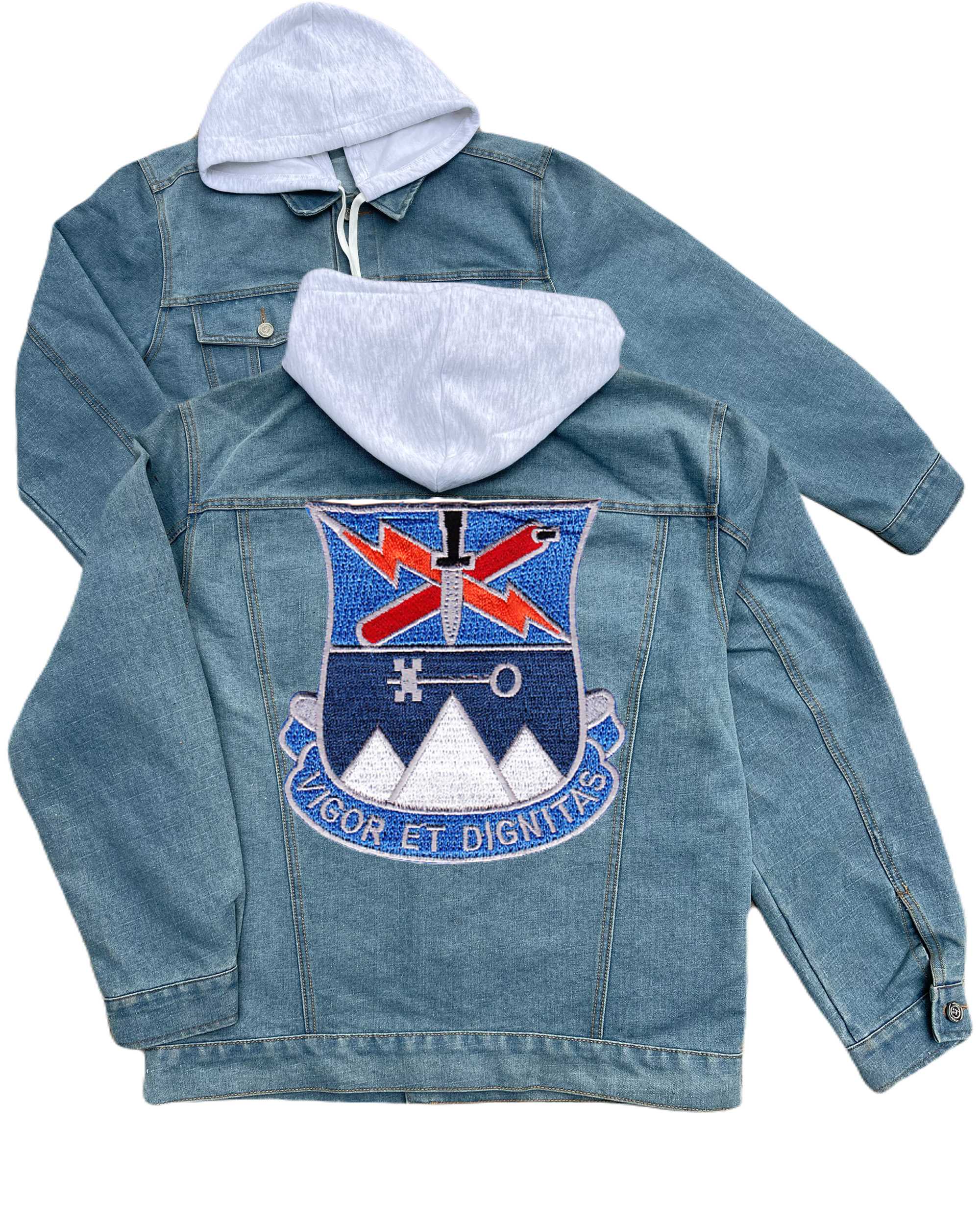 Special Troops Battalion 2nd Brigade 10th Mountain Division Embroidered Hood Jean Jacket