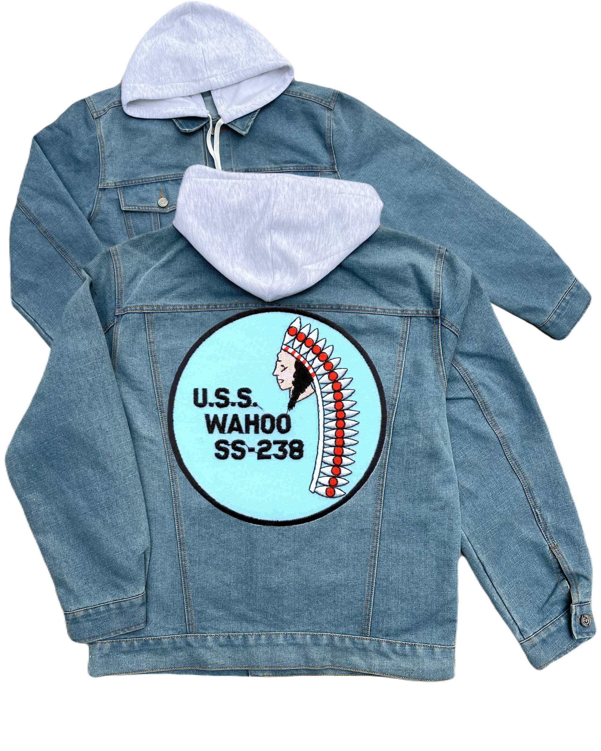 Ss 238 Uss Wahoo Embroidered Hood Jean Jacket