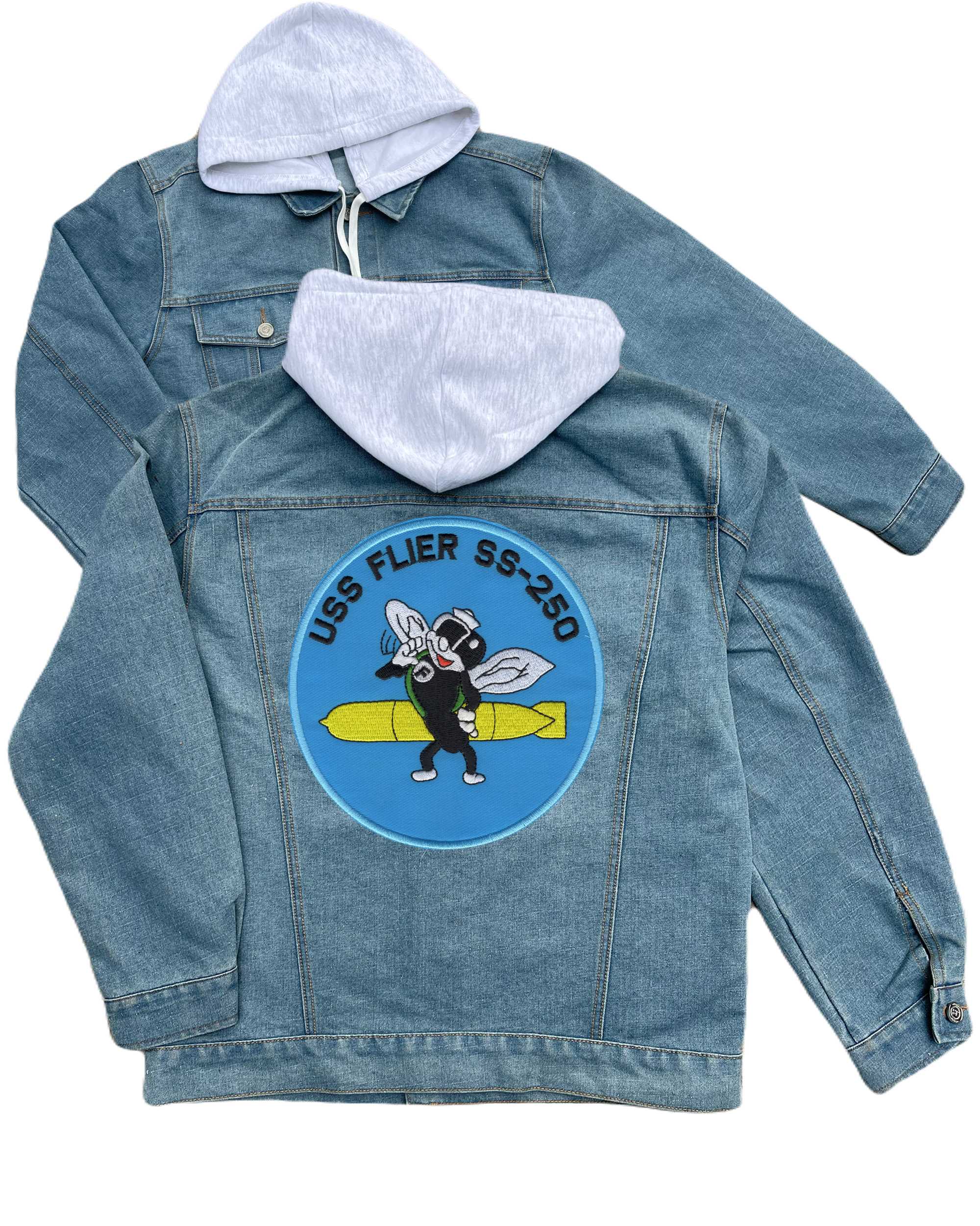 Ss 250 Uss Flier Embroidered Hood Jean Jacket