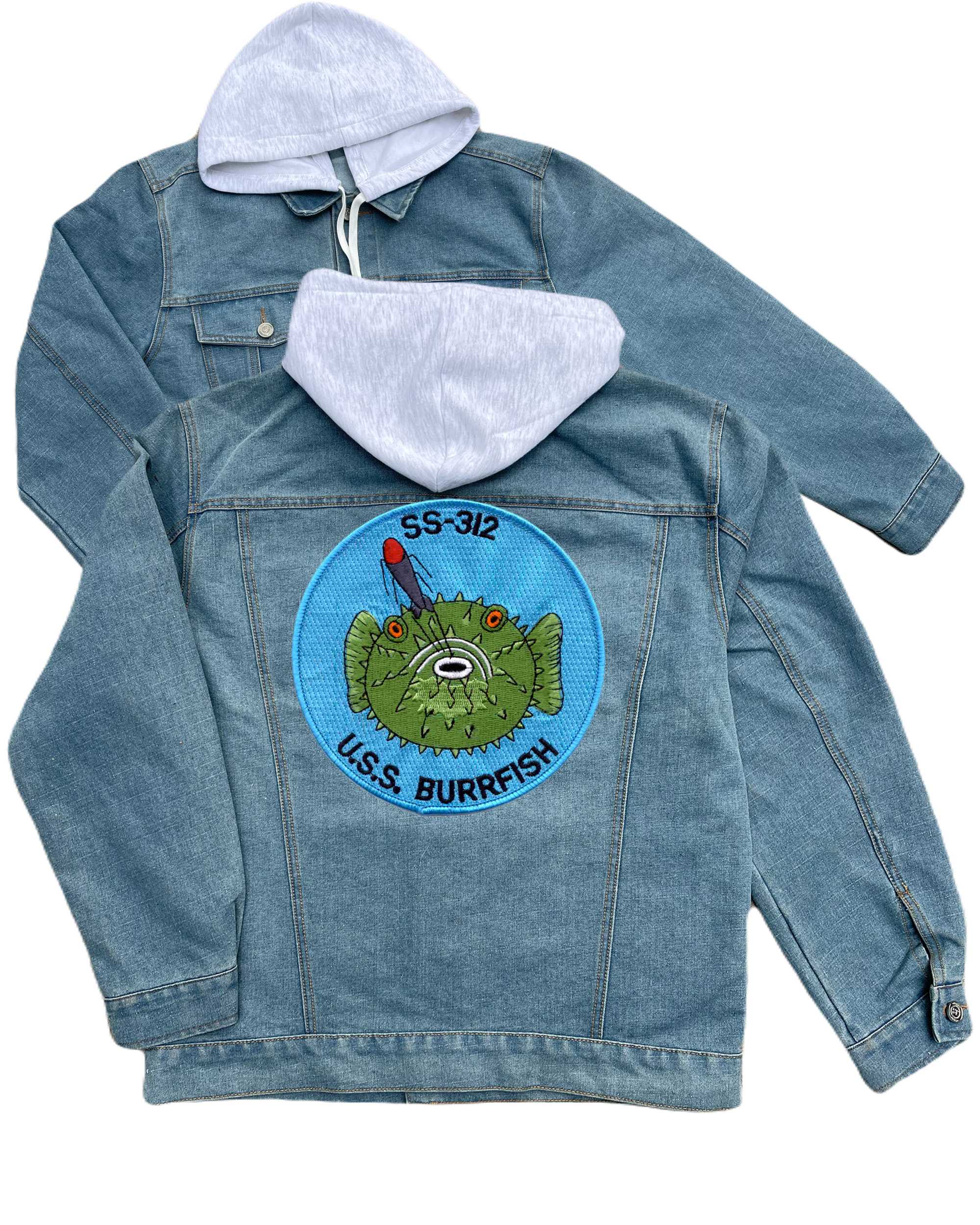 Ss 312 Uss Burrfish Embroidered Hood Jean Jacket Large