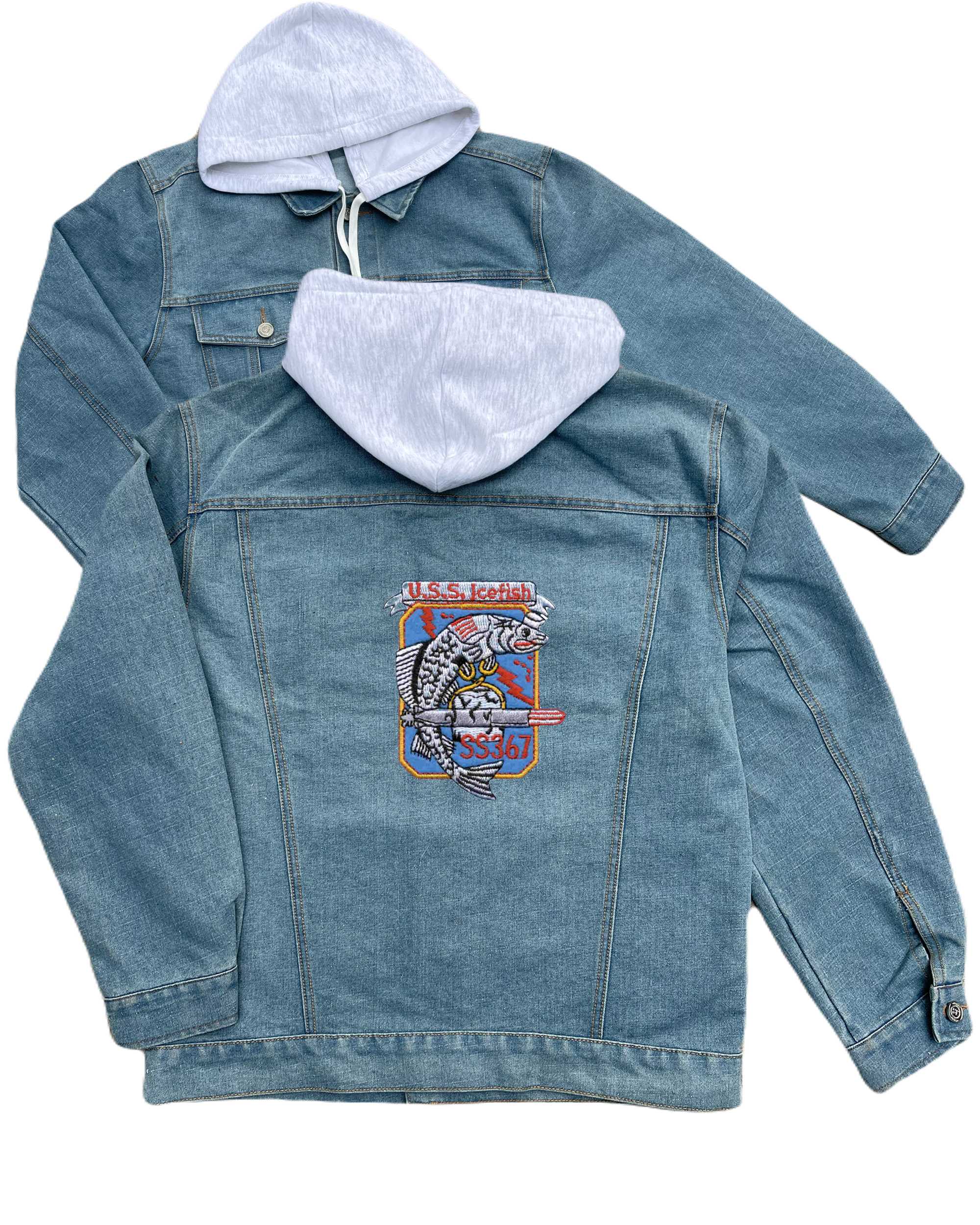 Ss 367 Uss Icefish Embroidered Hood Jean Jacket Small