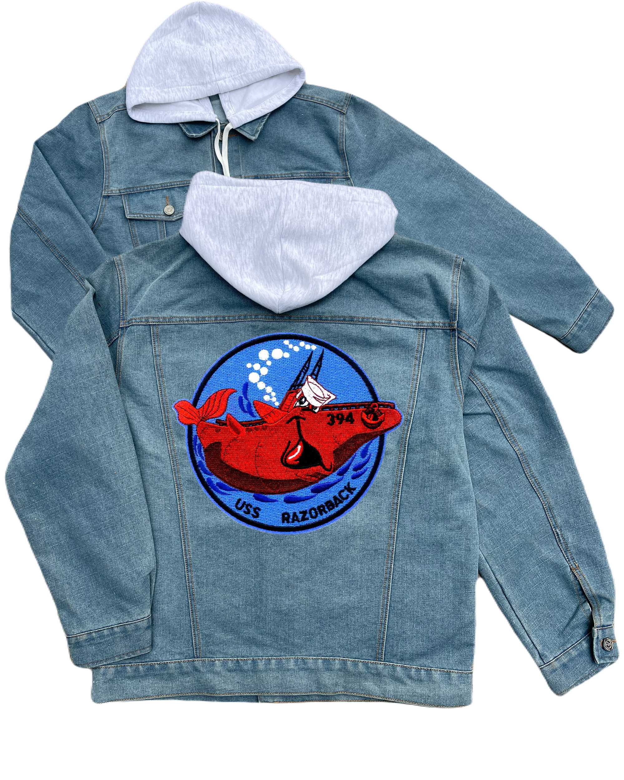 Ss 394 Uss Razorback Red Whale Small Embroidered Hood Jean Jacket