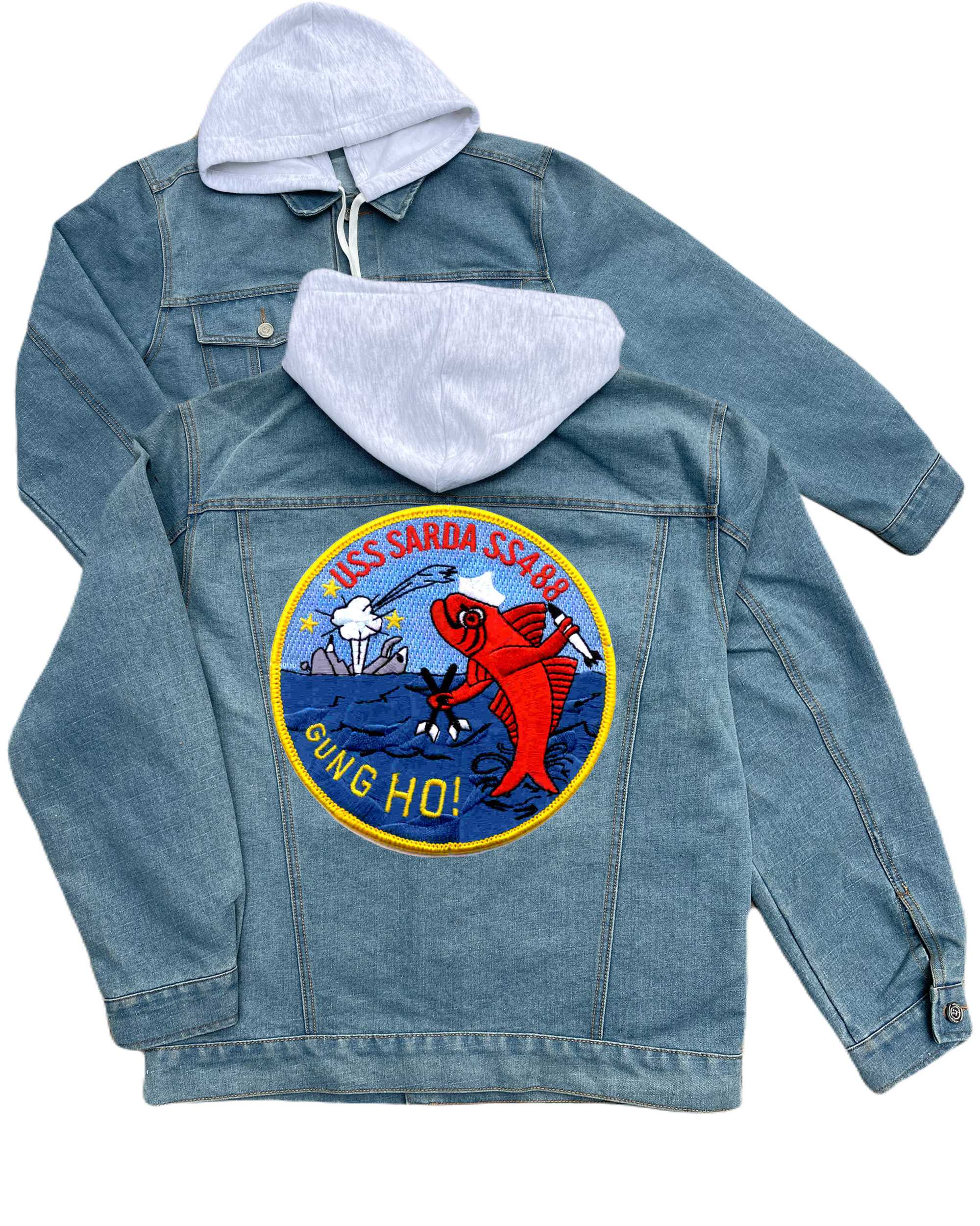 Ss 480 Uss Medregal Embroidered Hood Jean Jacket