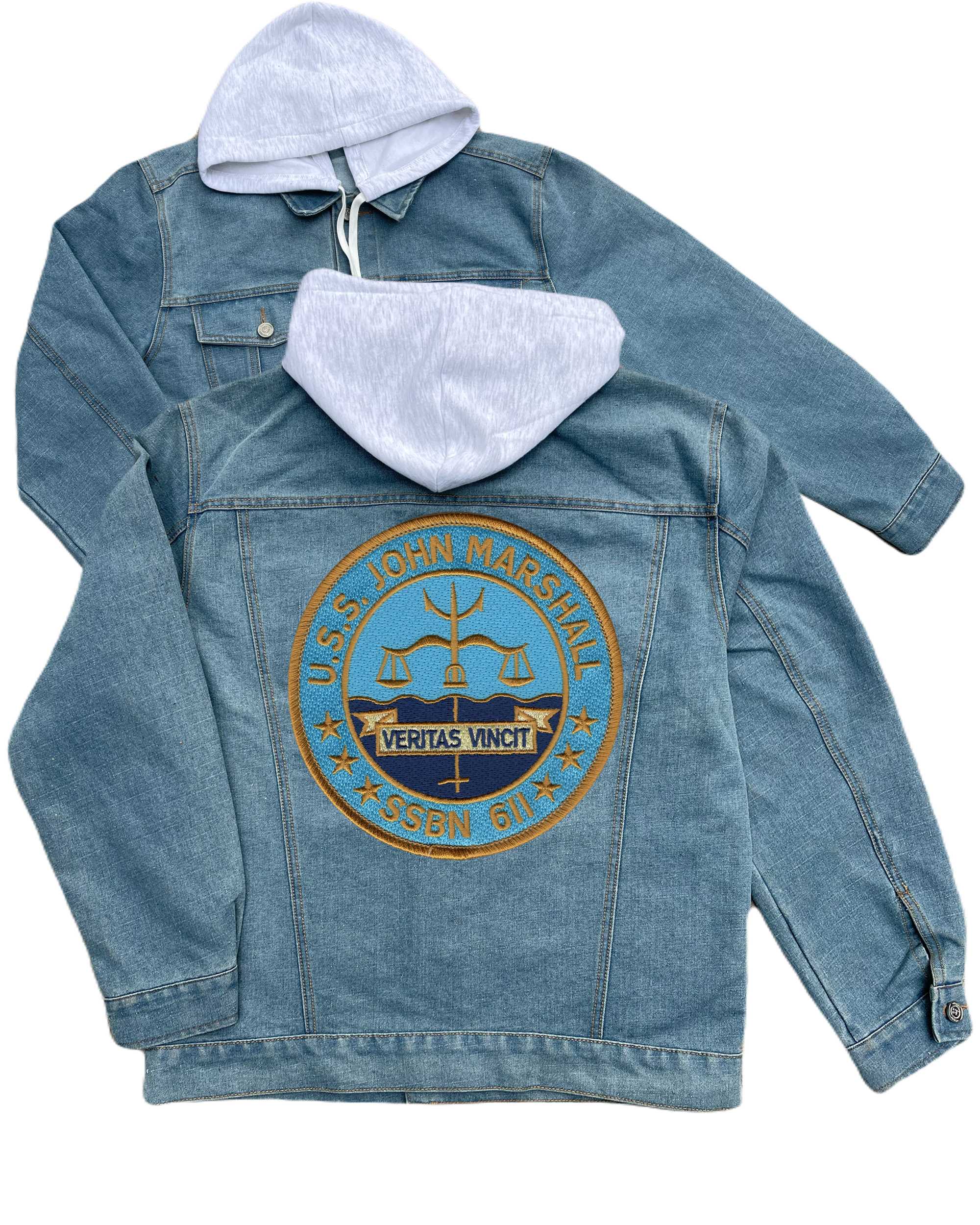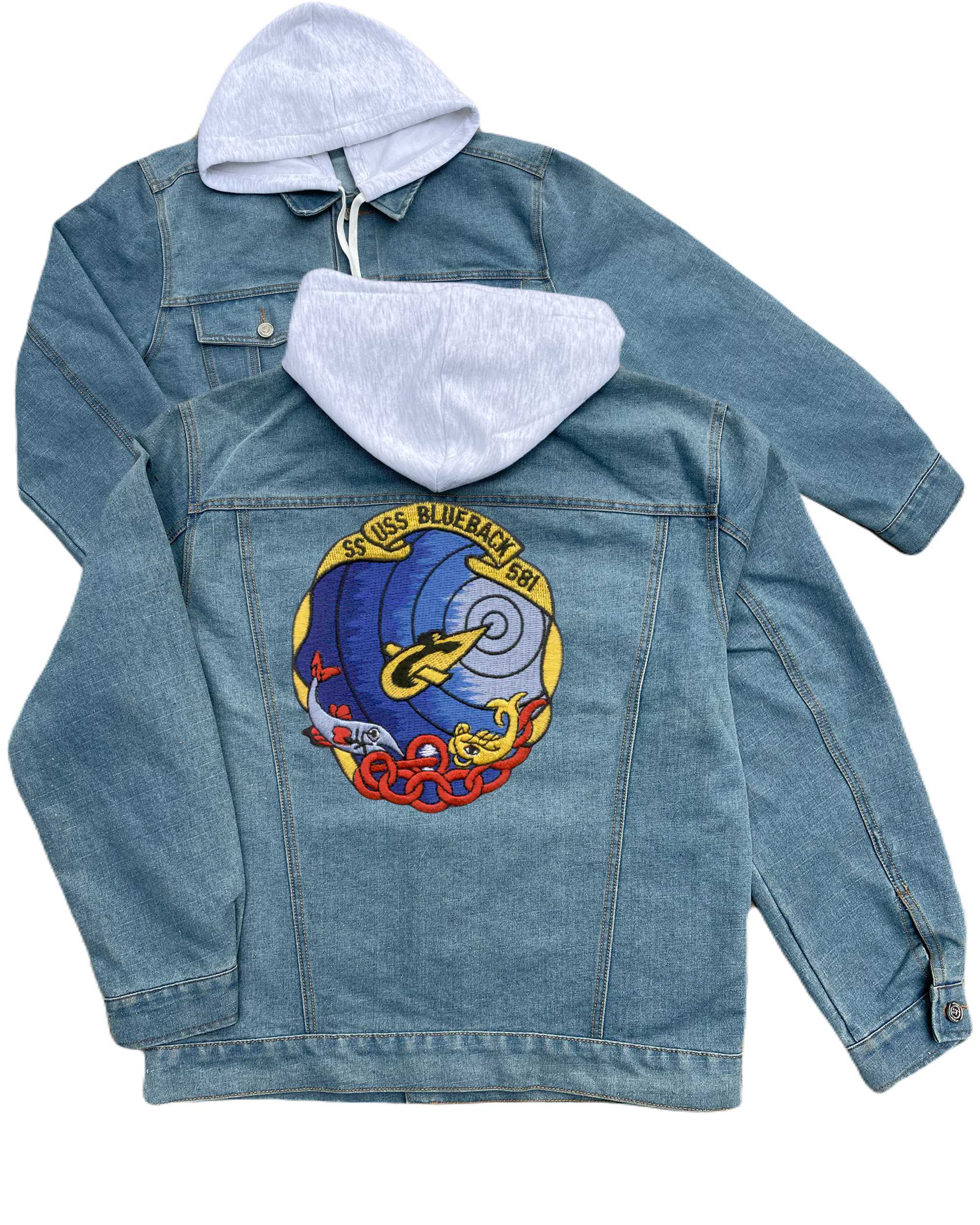 Ss 581 Uss Blueback Embroidered Hood Jean Jacket