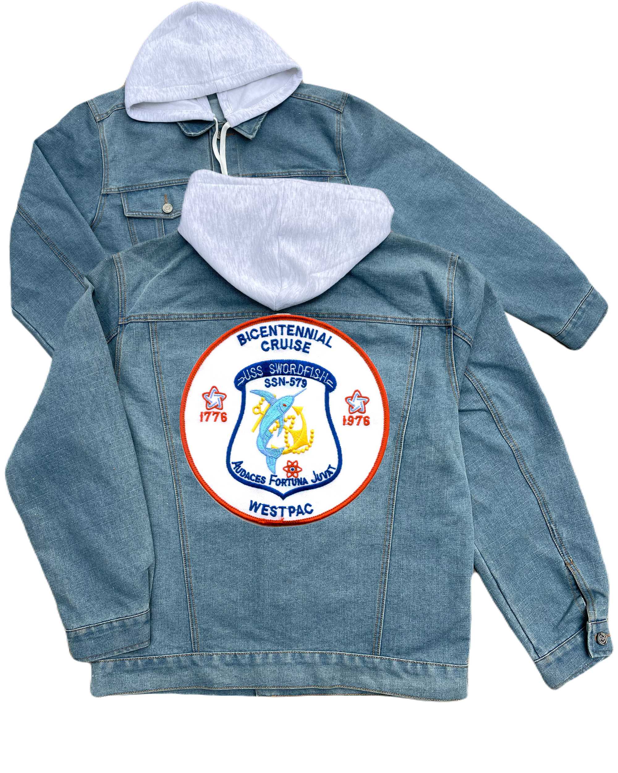 Ssn 579 Uss Swordfish Embroidered Hood Jean Jacket A Version