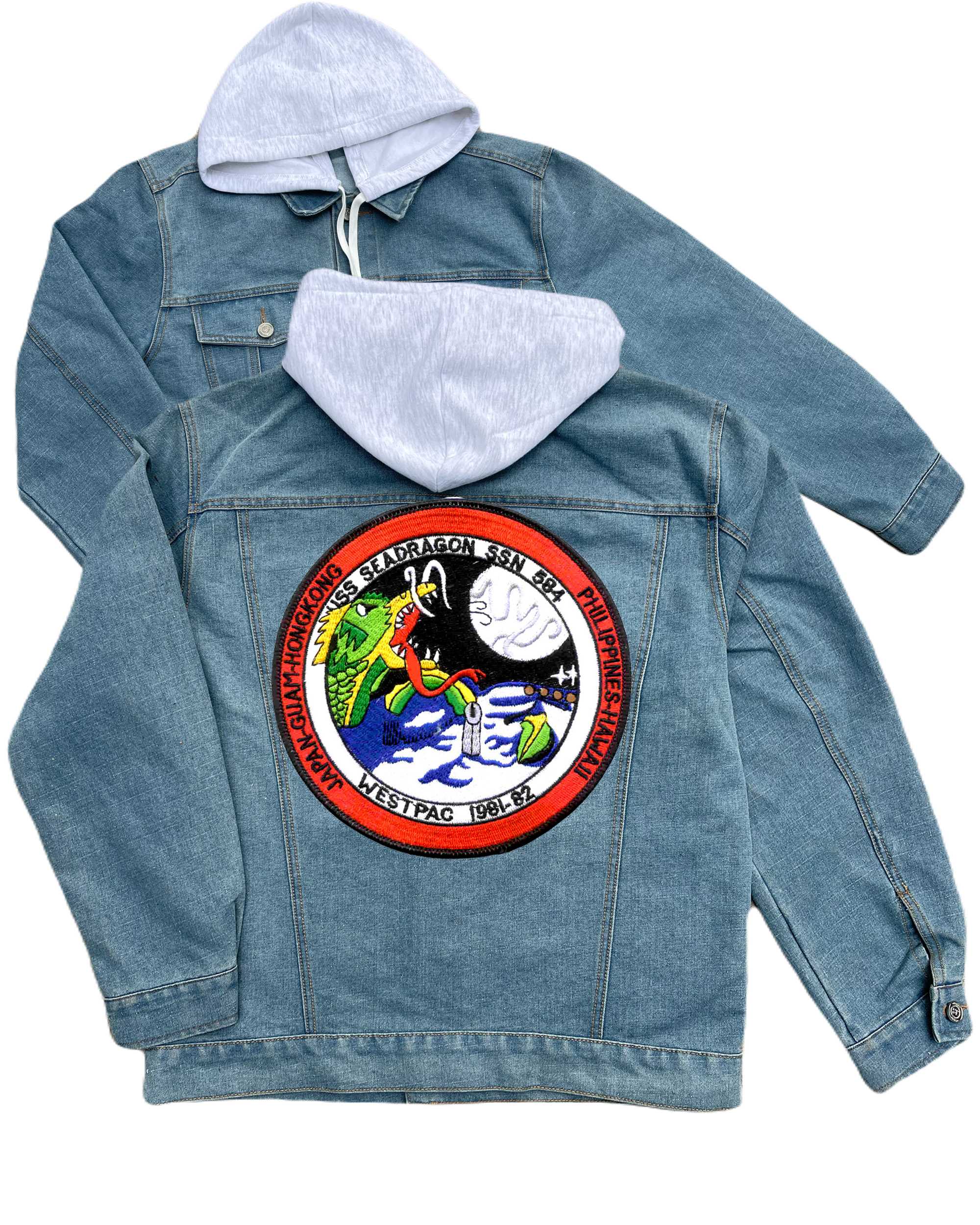 Ssn 584 Uss Sea Dragon Embroidered Hood Jean Jacket Version C