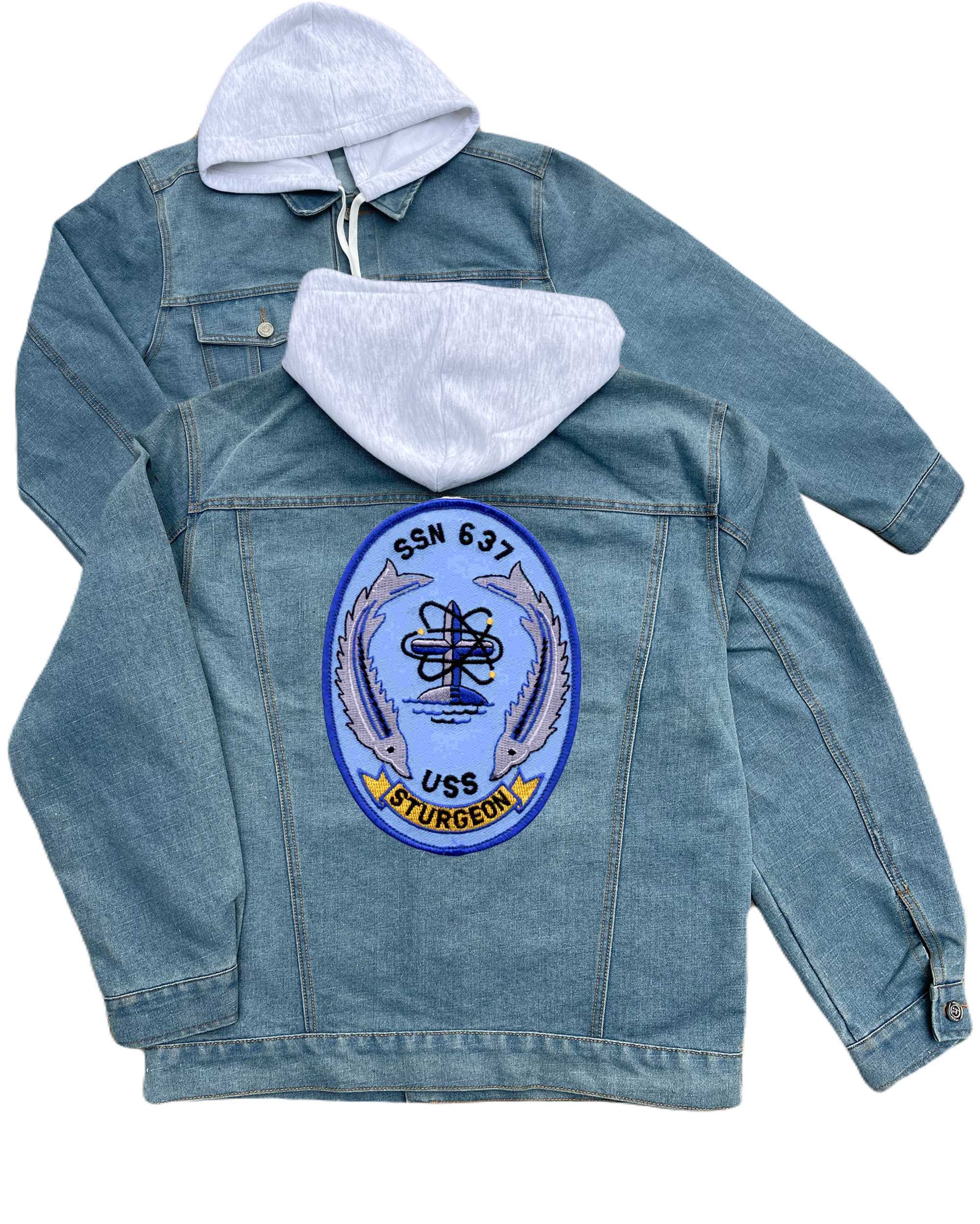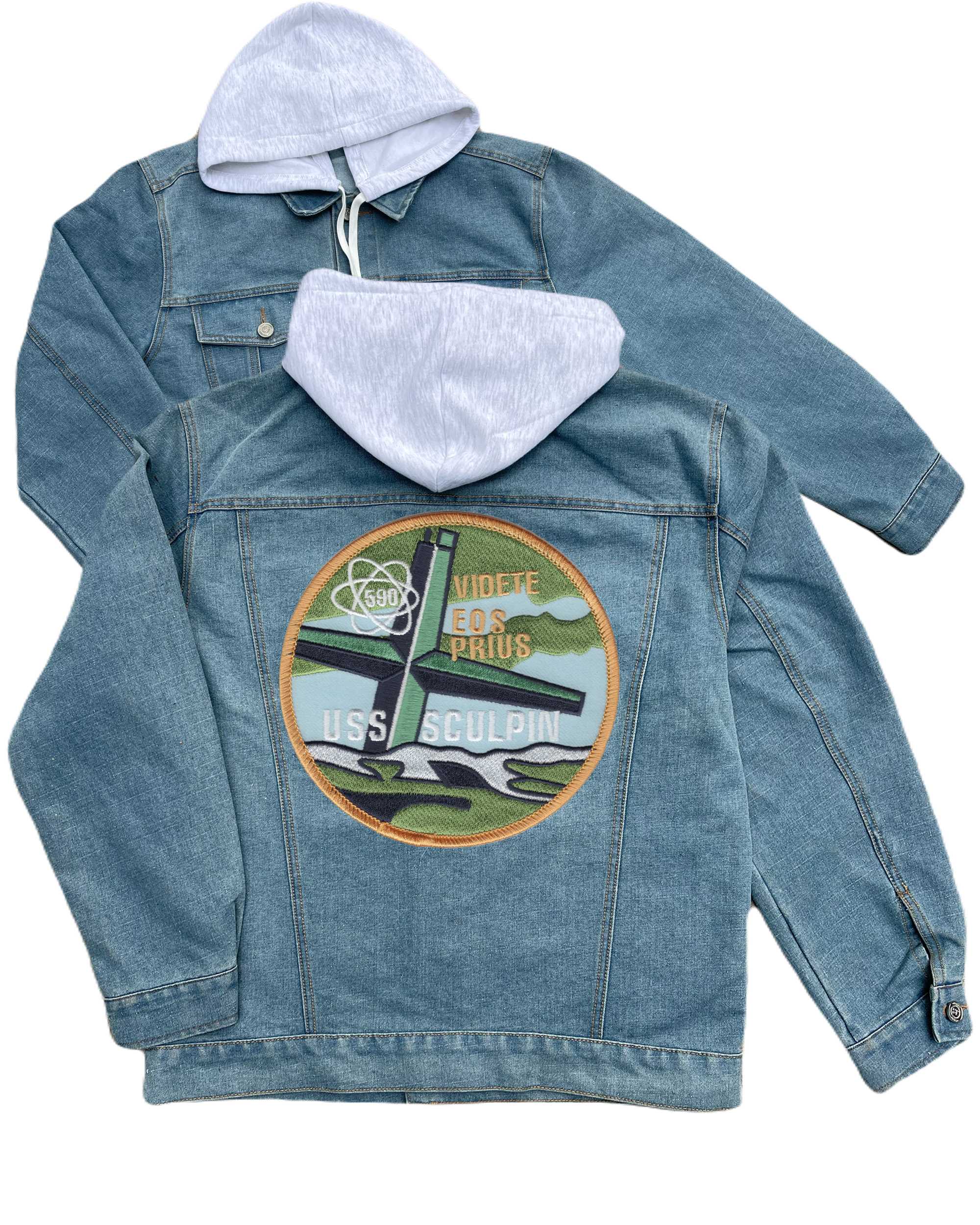 Ssn 590 Uss Sculpin Submarine Embroidered Hood Jean Jacket