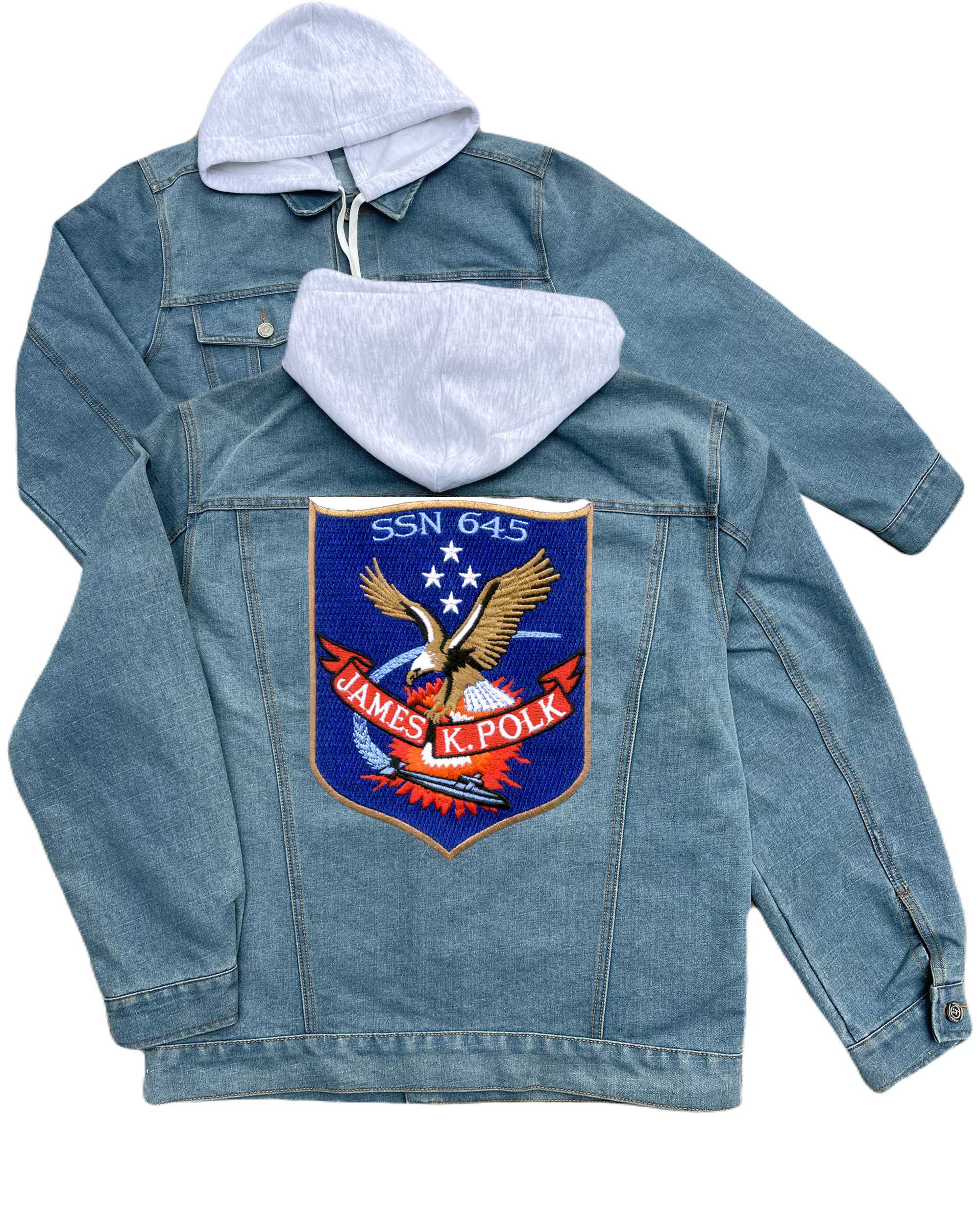 Ssn 645 Uss James K Polk Embroidered Hood Jean Jacket