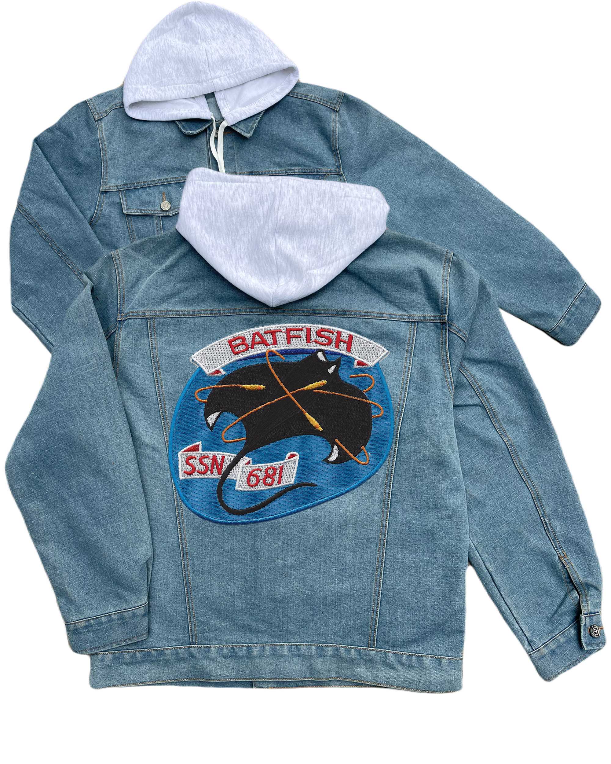 Ssn 662 Uss Gurnard Embroidered Hood Jean Jacket