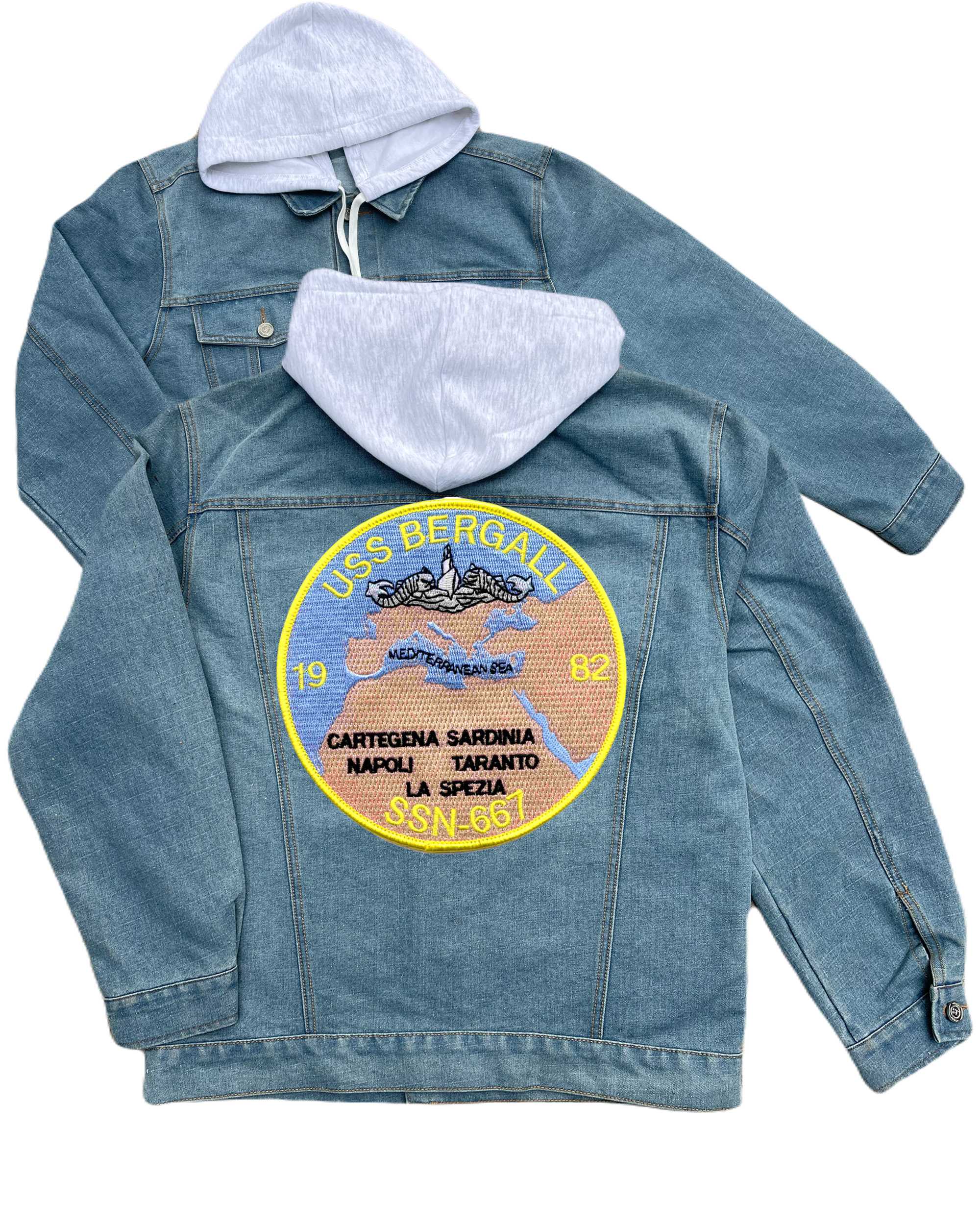 Ssn 667 Uss Bergall Embroidered Hood Jean Jacket Version B