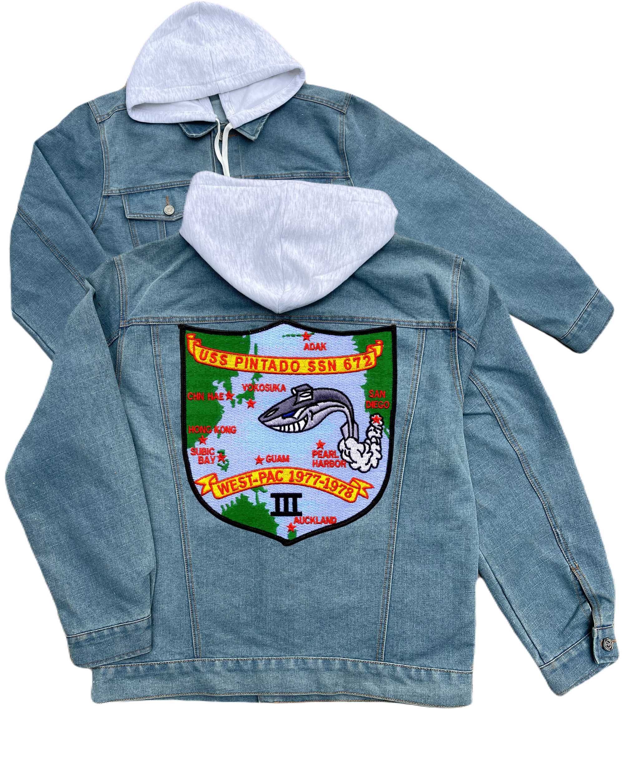 Ssn 672 Uss Pintado Embroidered Hood Jean Jacket Version A