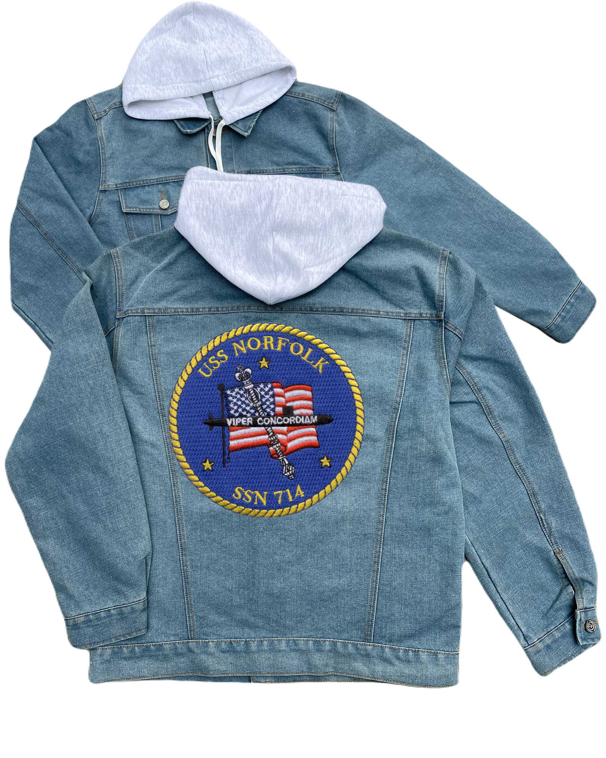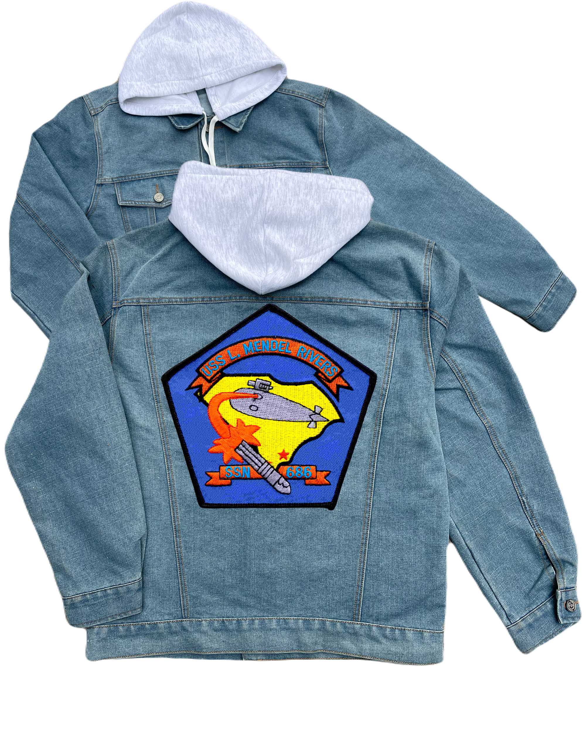 Ssn 686 Uss Mendel Rivers Embroidered Hood Jean Jacket