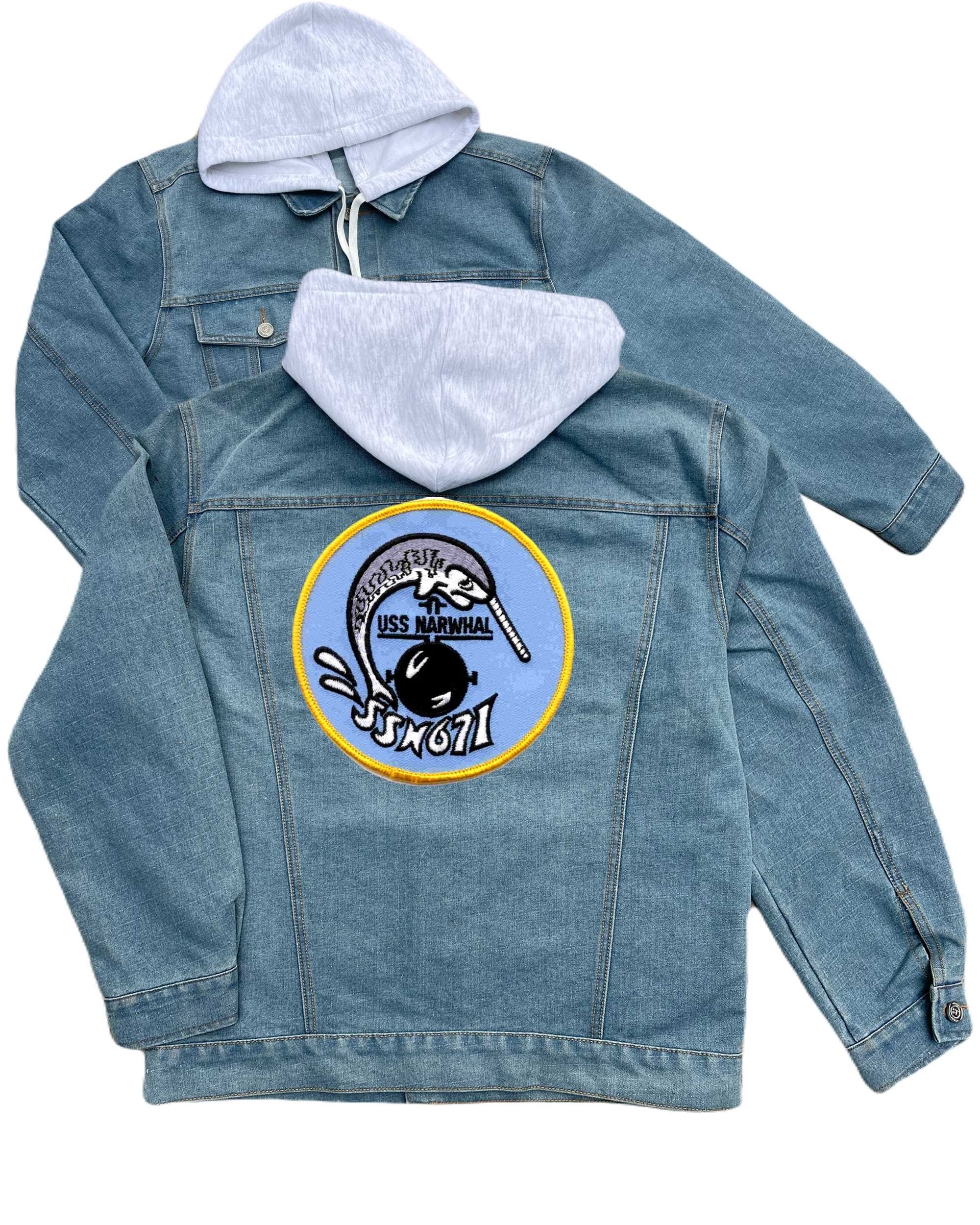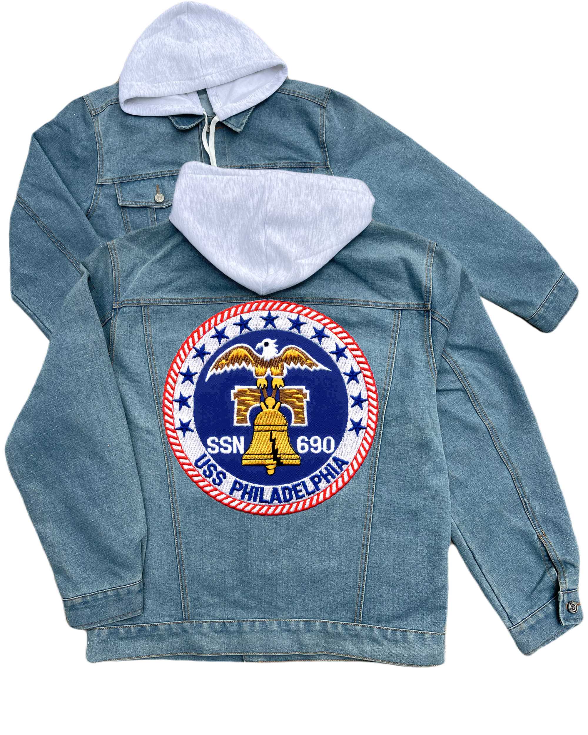 Ssn 690 Uss Philadelphia Embroidered Hood Jean Jacket