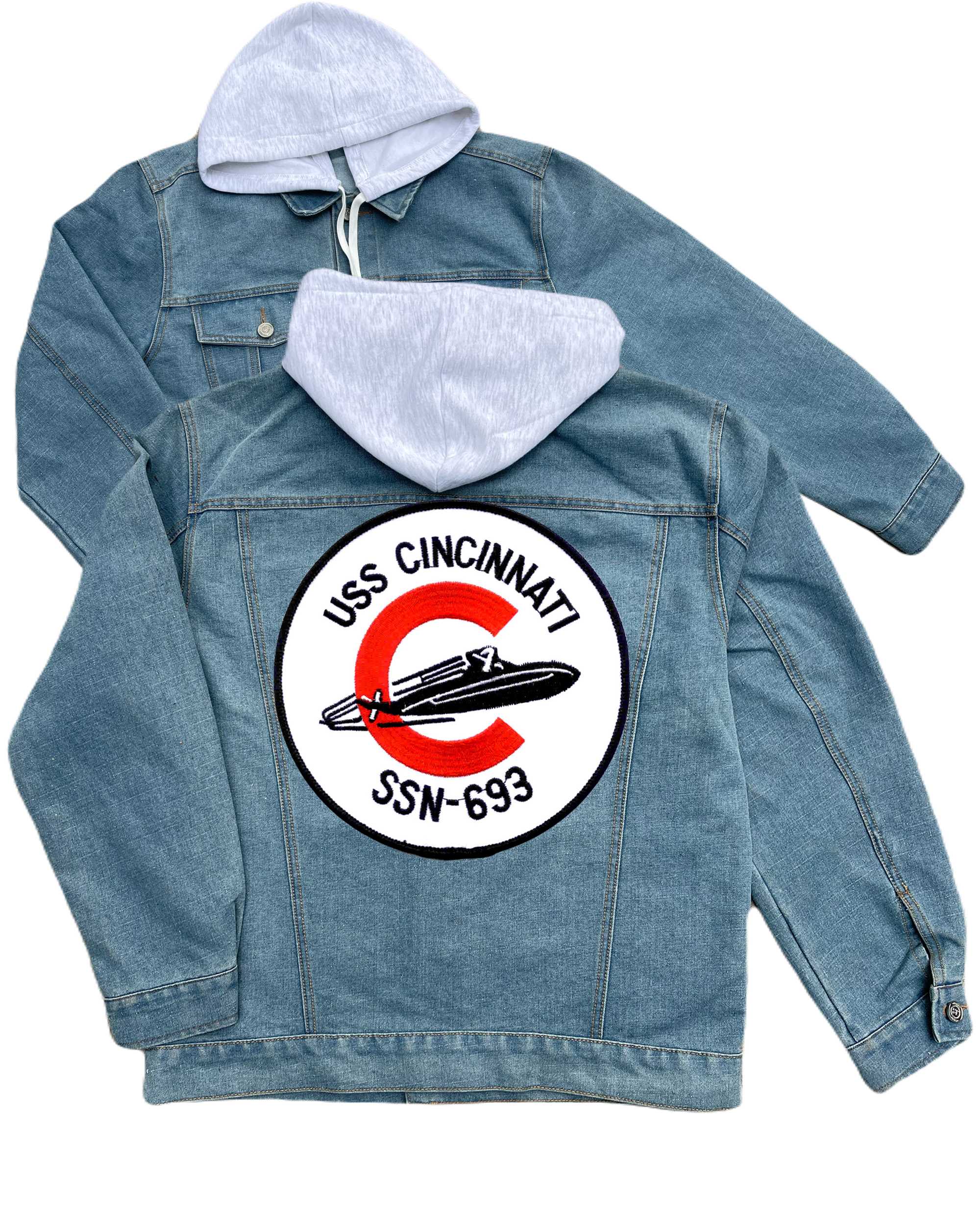 Ssn 693 Uss Cincinnati Embroidered Hood Jean Jacket