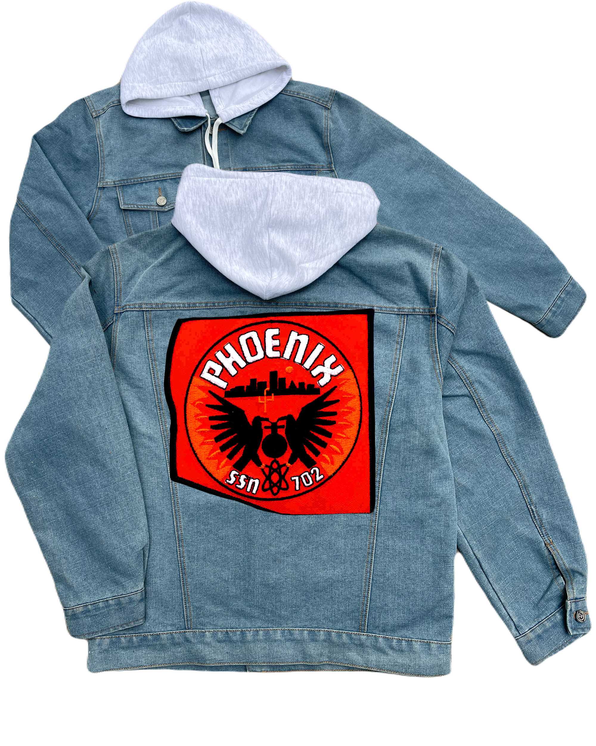 Ssn 702 Uss Phoenix Embroidered Hood Jean Jacket
