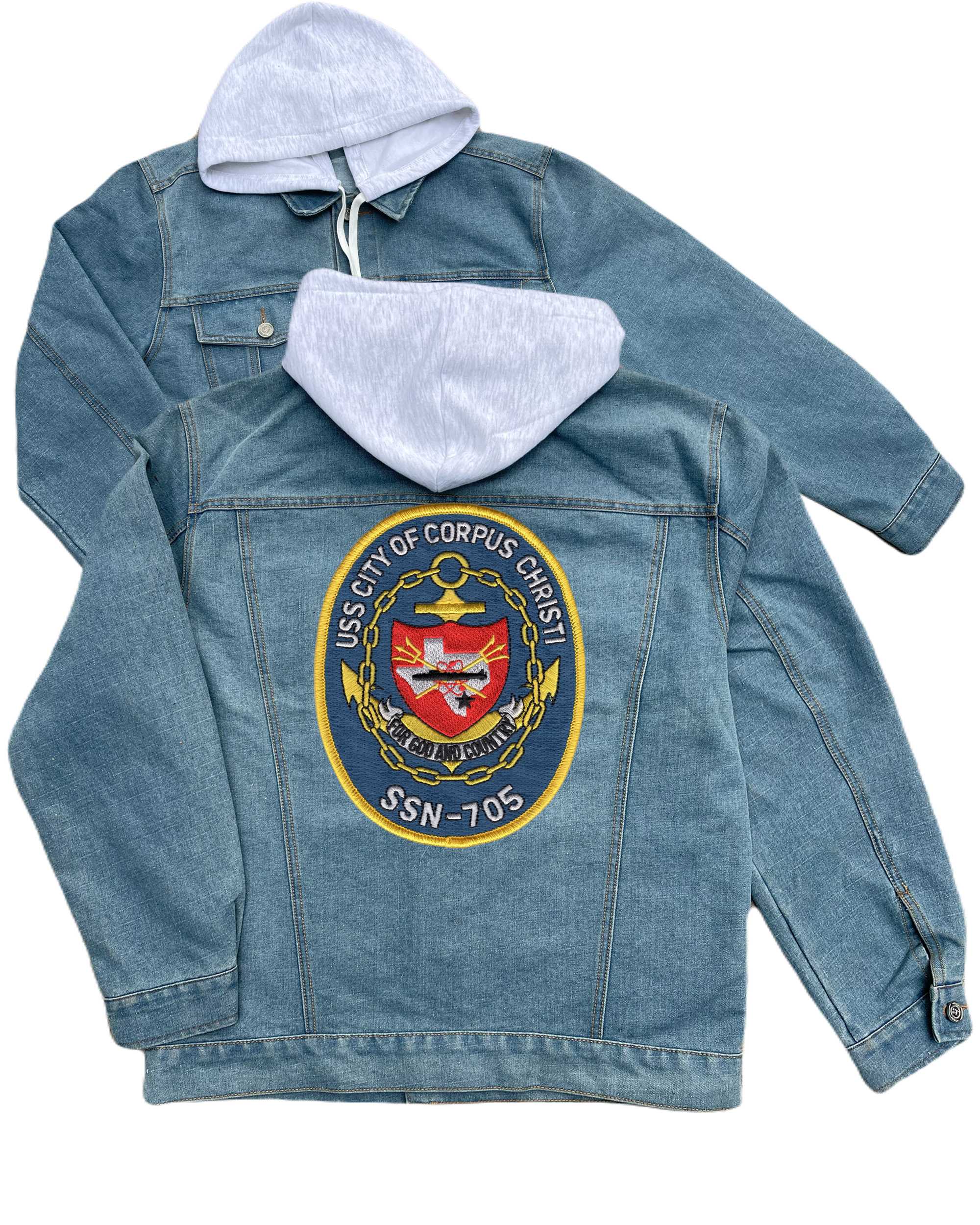 Ssn 705 Uss City Of Corpus Christi Embroidered Hood Jean Jacket