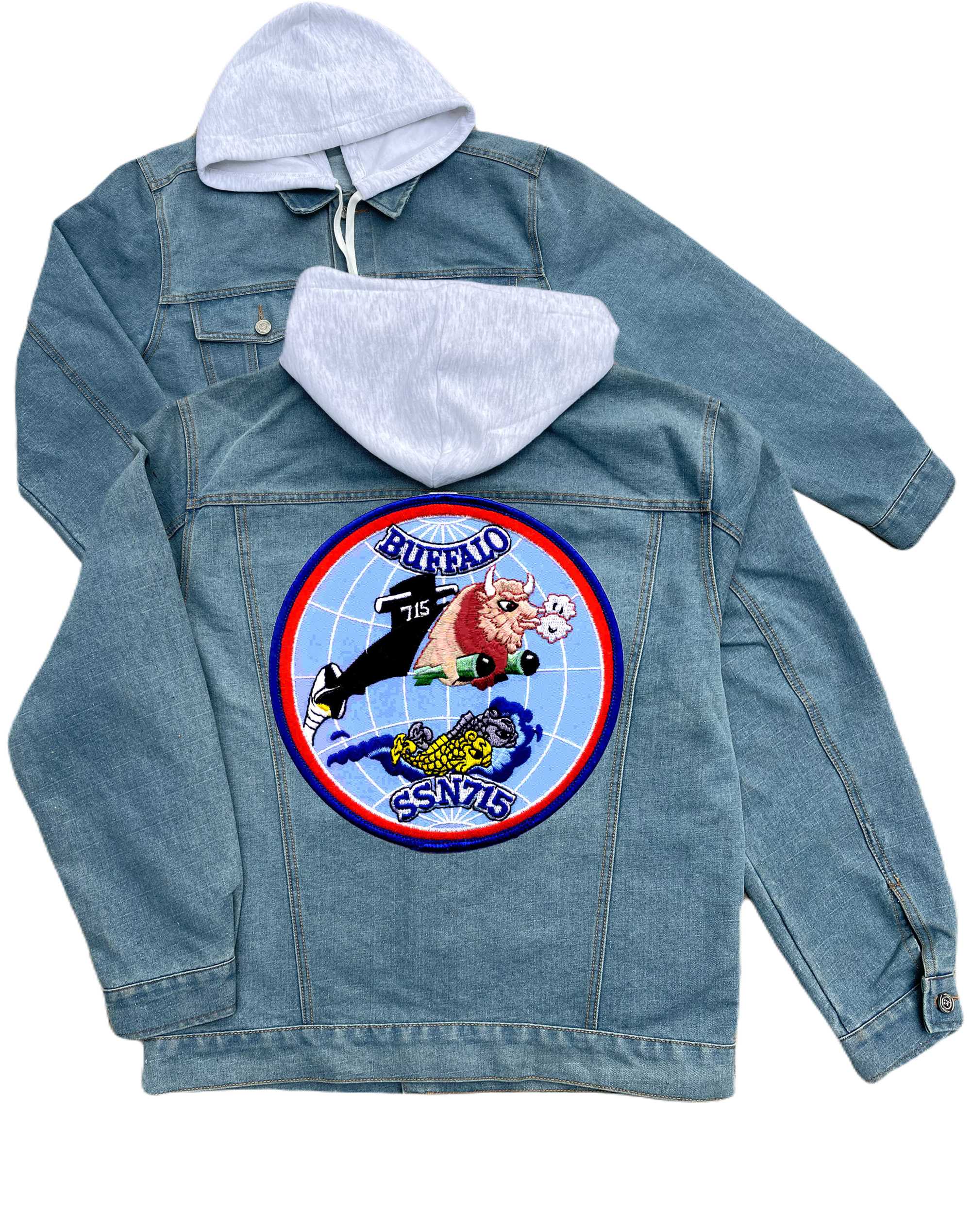 Ssn 715 Uss Buffalo Embroidered Hood Jean Jacket