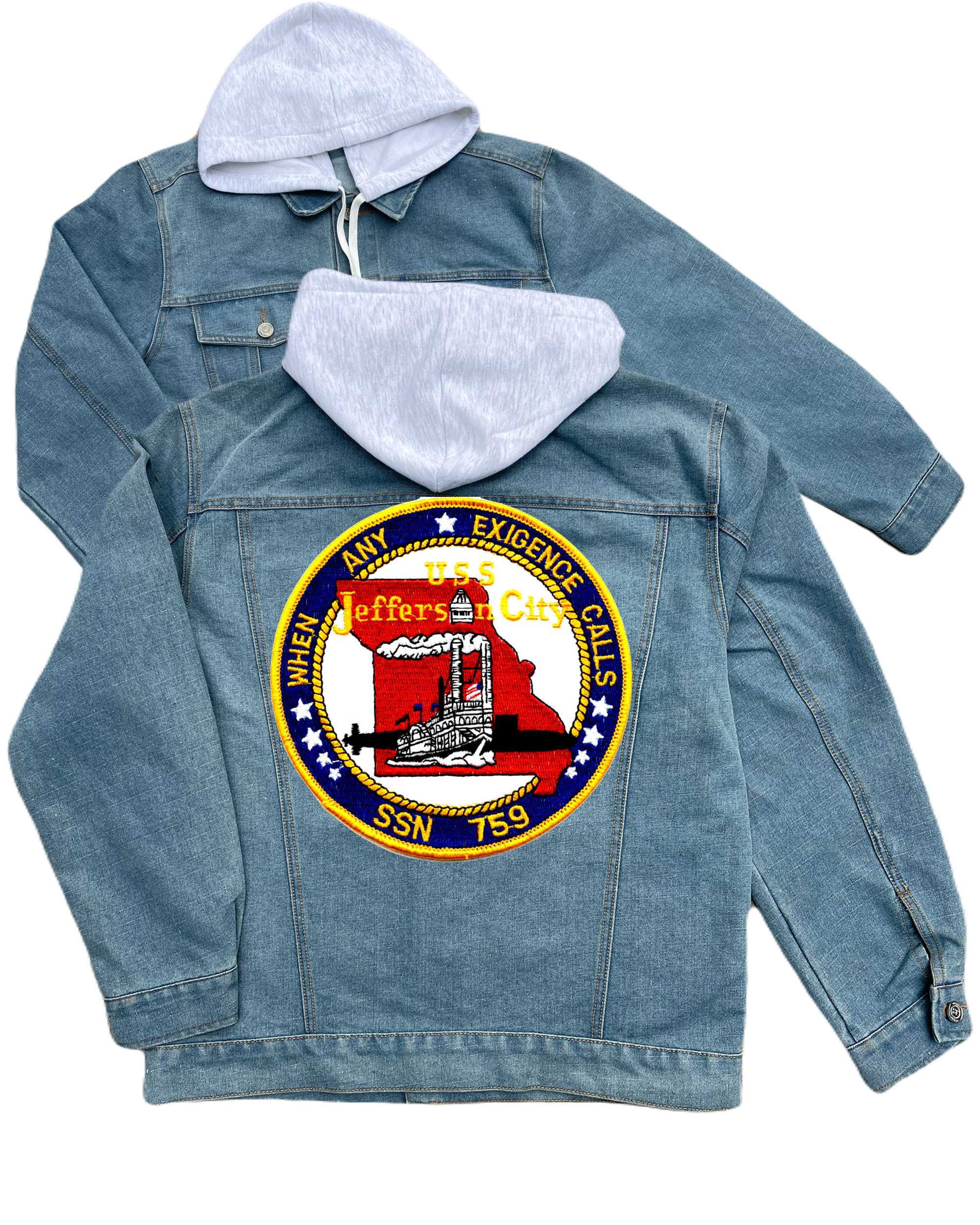 Ssn 759 Uss Jeffersion City Embroidered Hood Jean Jacket
