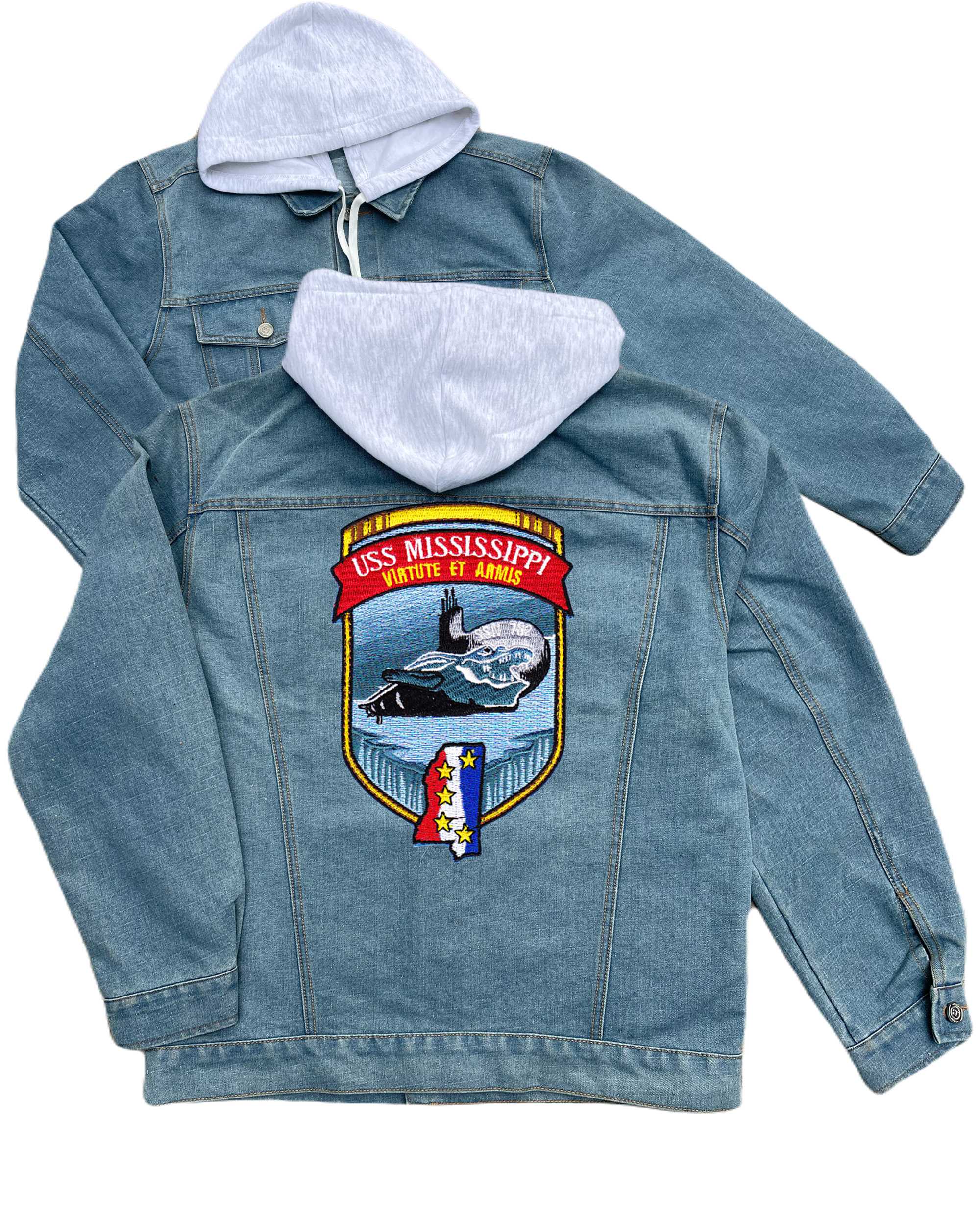Ssn 762 Uss Columbus Embroidered Hood Jean Jacket