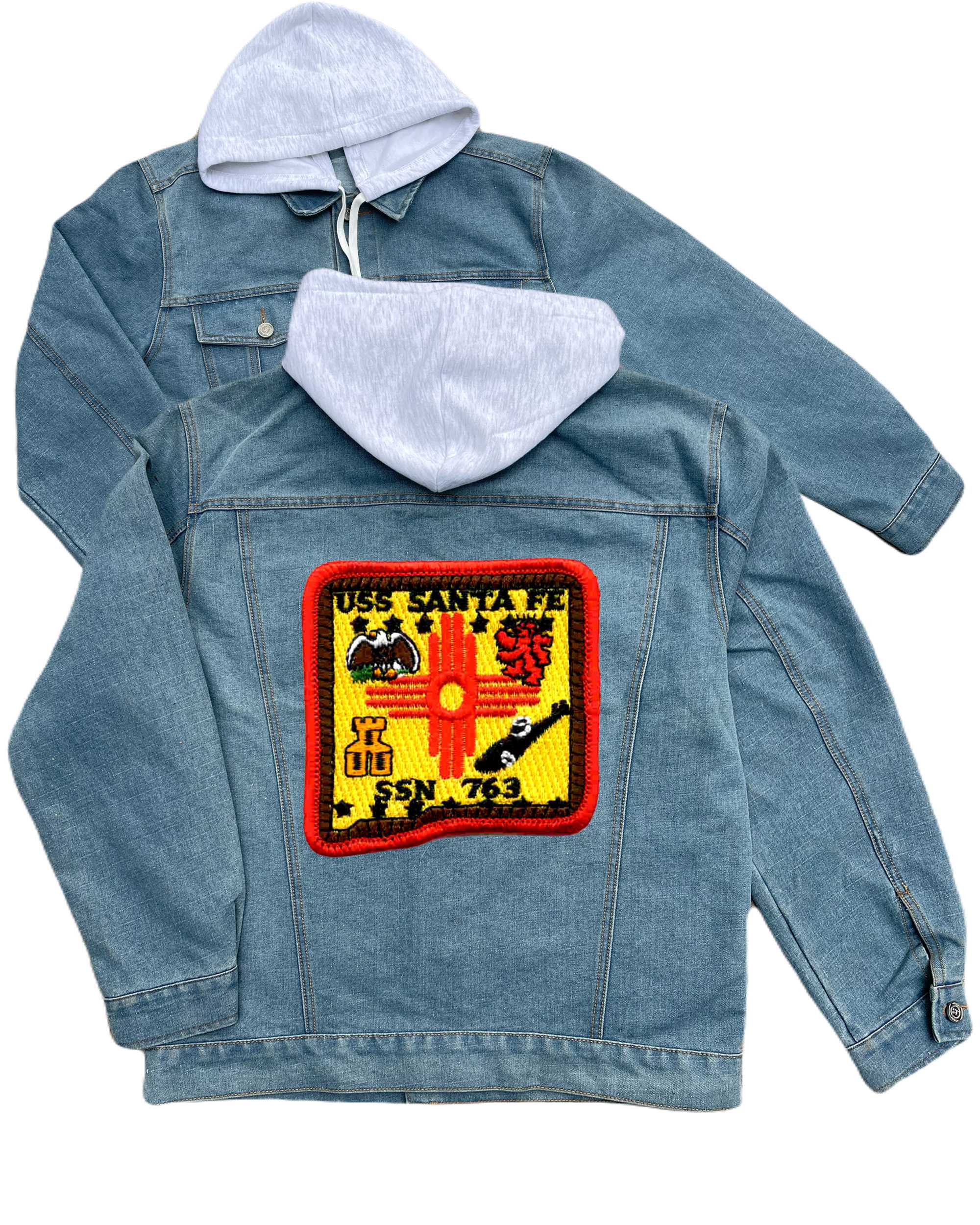 Ssn 763 Uss Santa Fe Embroidered Hood Jean Jacket