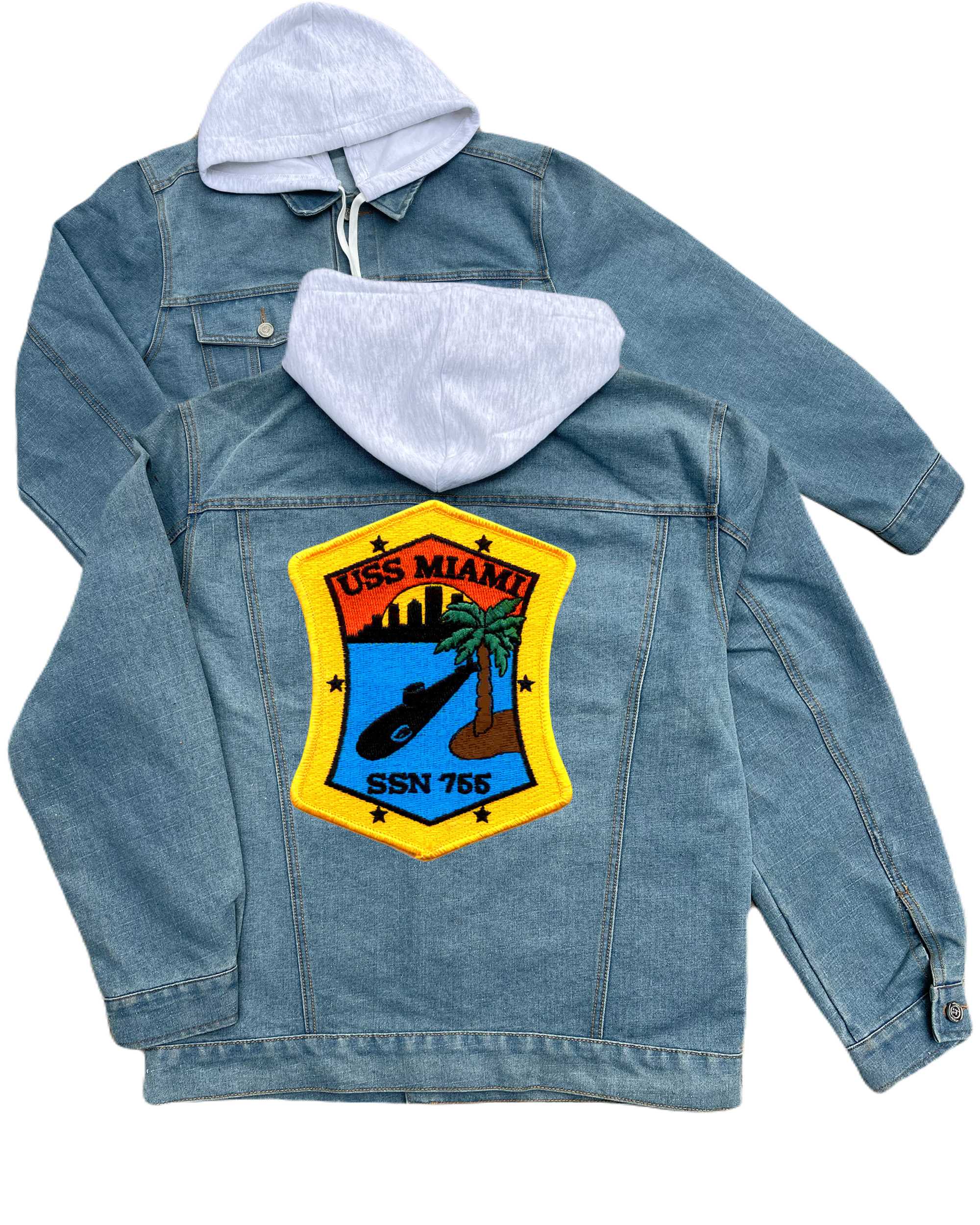 Ssn 775 Uss Texas Submarine Embroidered Hood Jean Jacket A Version