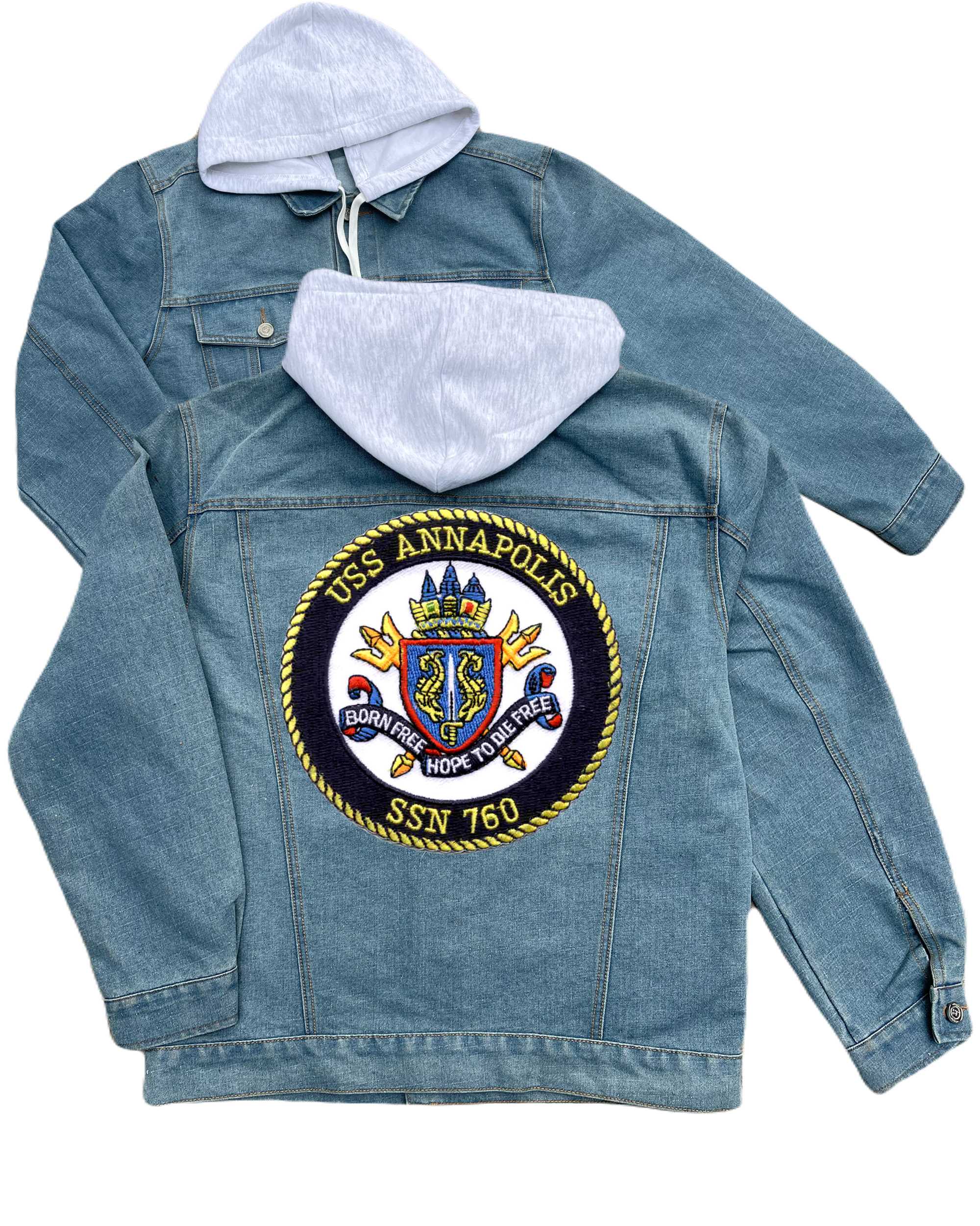 Ssn 779 Uss New Mexico Embroidered Hood Jean Jacket