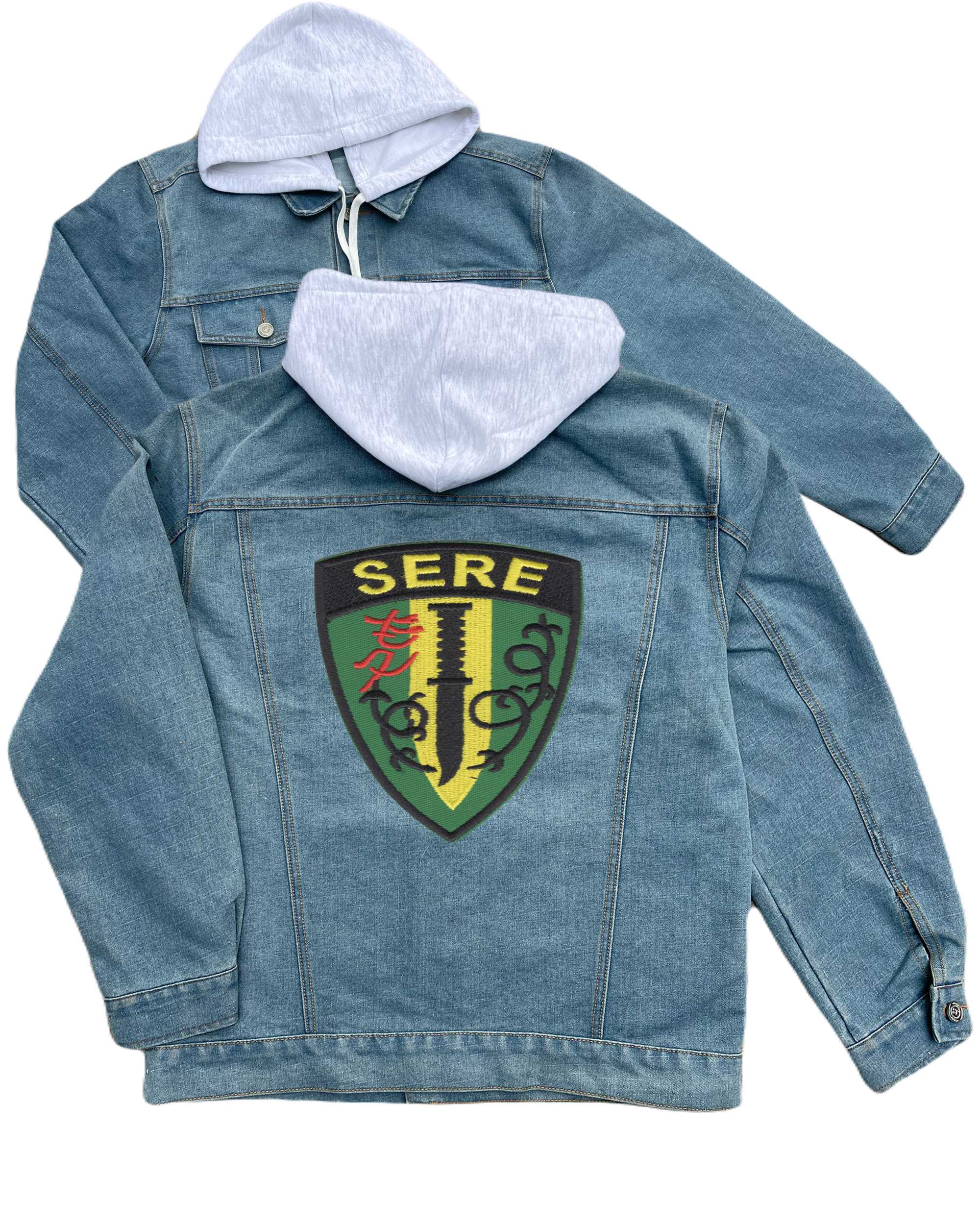 Survival Evasion Resistance Escape Sere School Embroidered Hood Jean Jacket Knife Slashing Barbed Wire