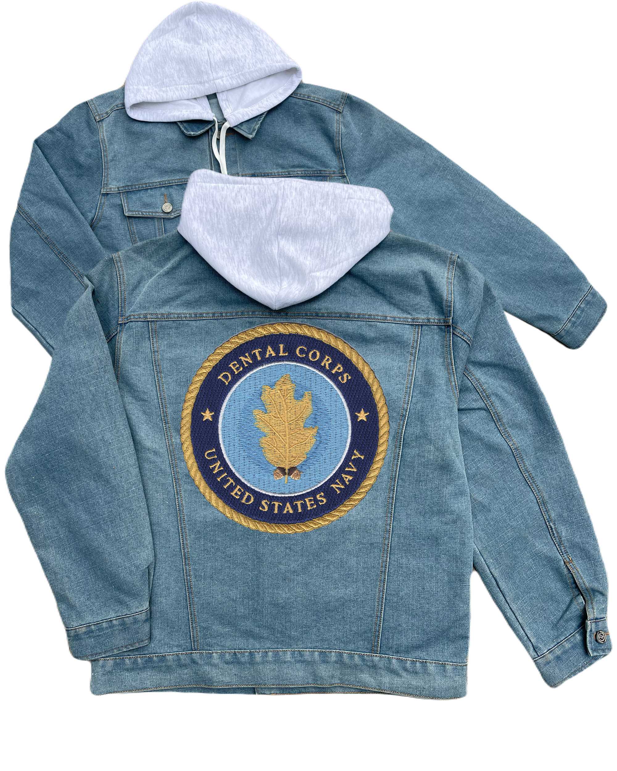 United States Air Force Wings Emblem Embroidered Hood Jean Jacket