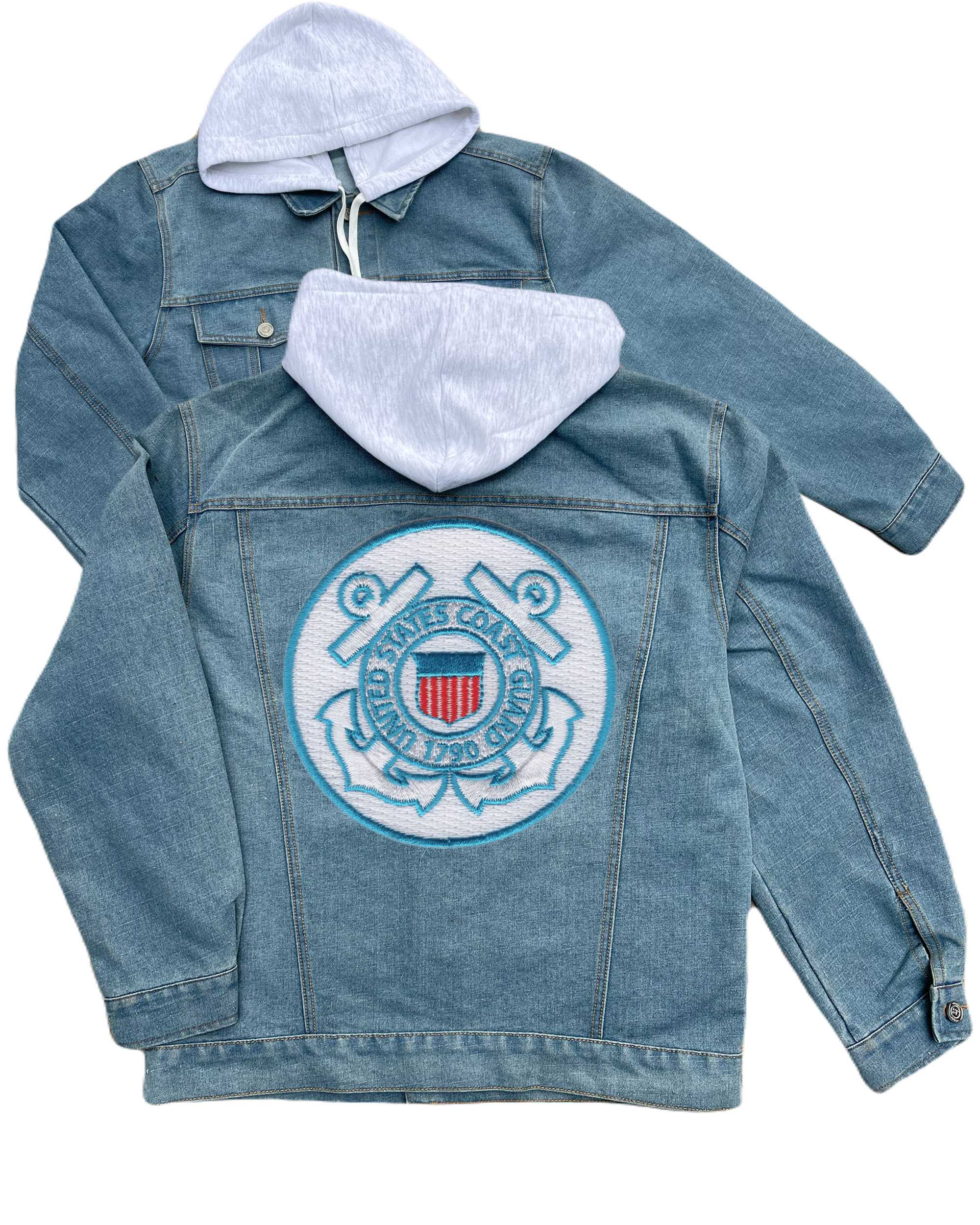 United States Coast Guard Crest Embroidered Embroidered Hood Jean Jacket