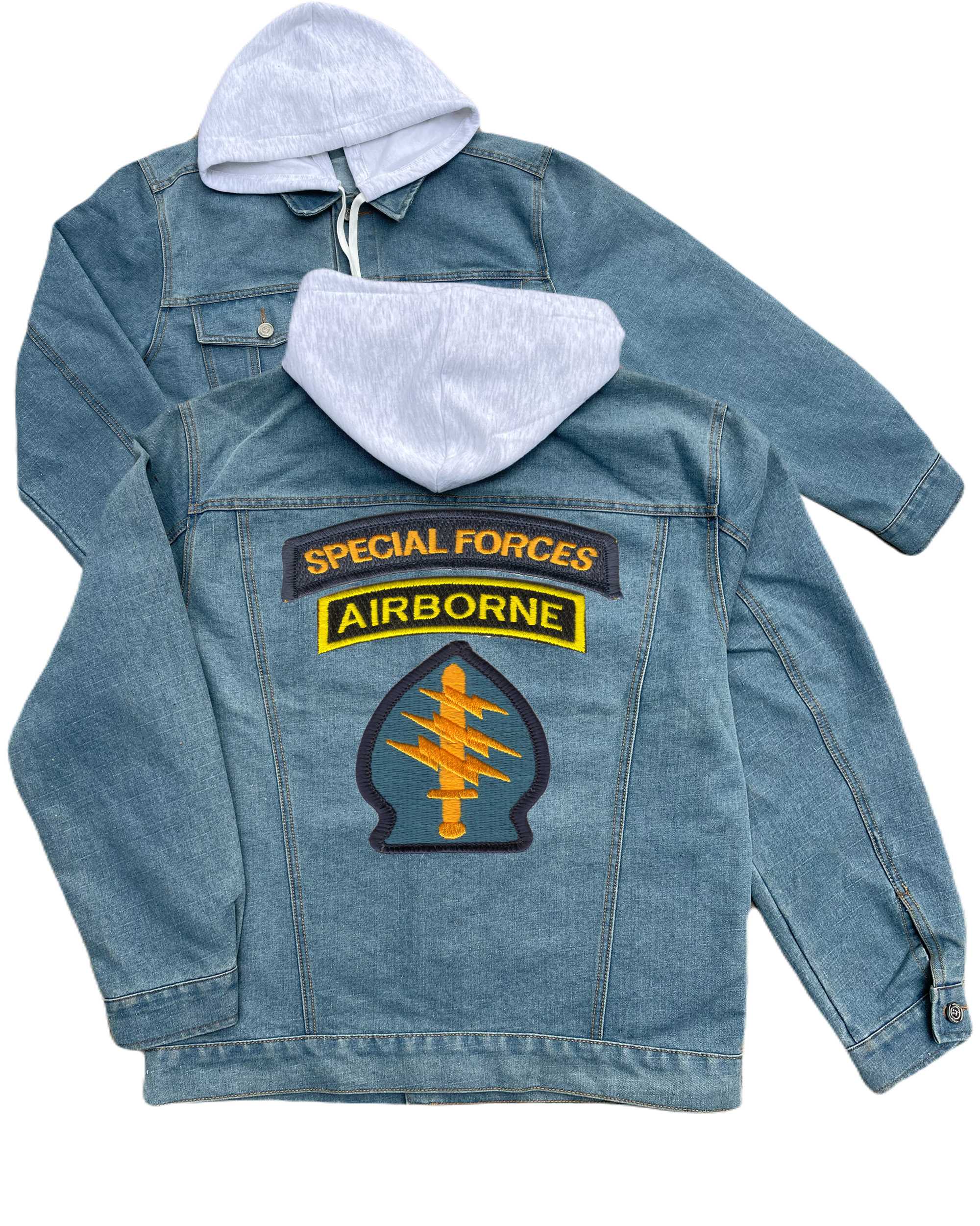 Us Army Special Forces Ssi Embroidered Hood Jean Jacket Special Forces Tab Embroidered Hood Jean Jacket