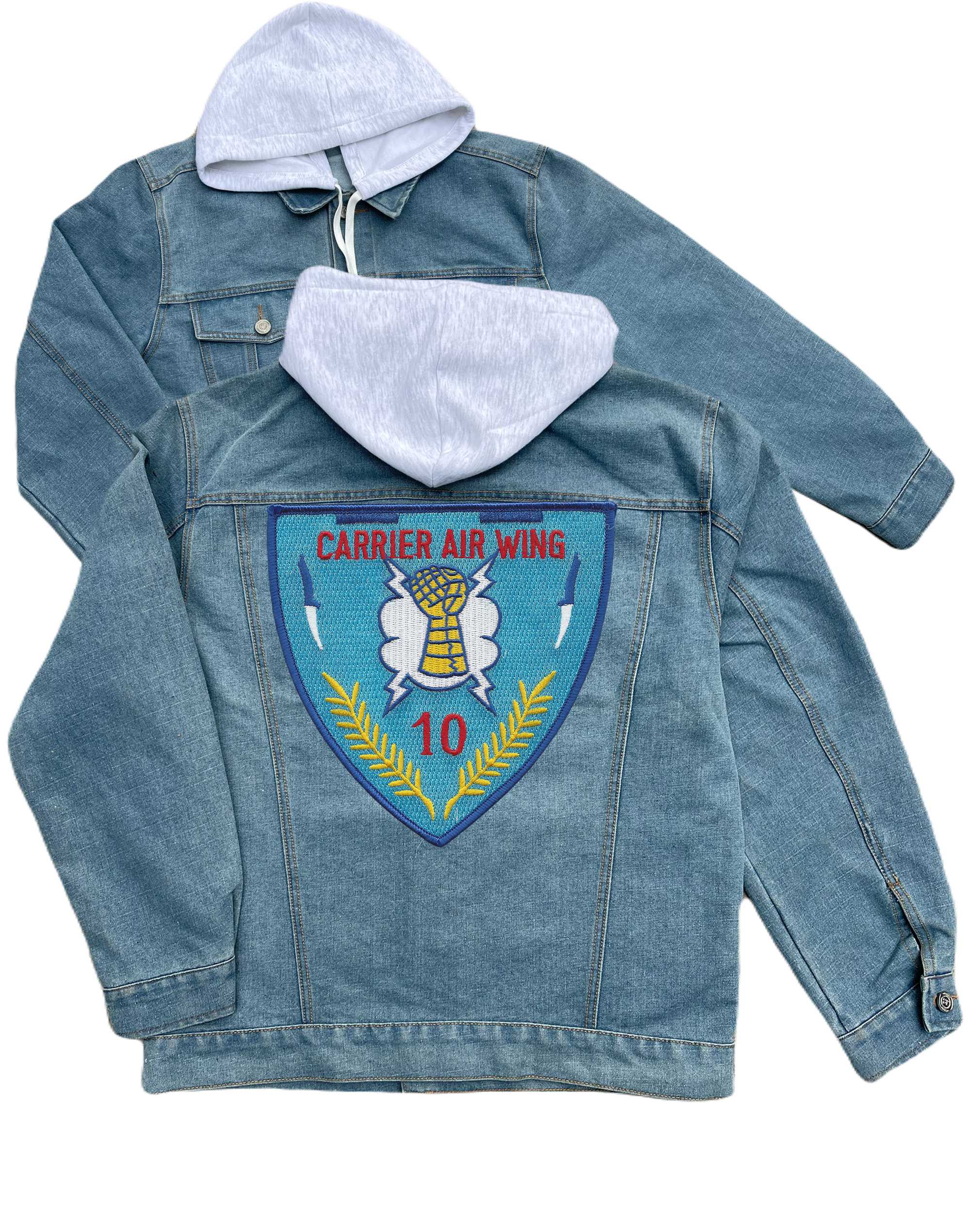 Us Carrier Air Wing 10 Embroidered Hood Jean Jacket