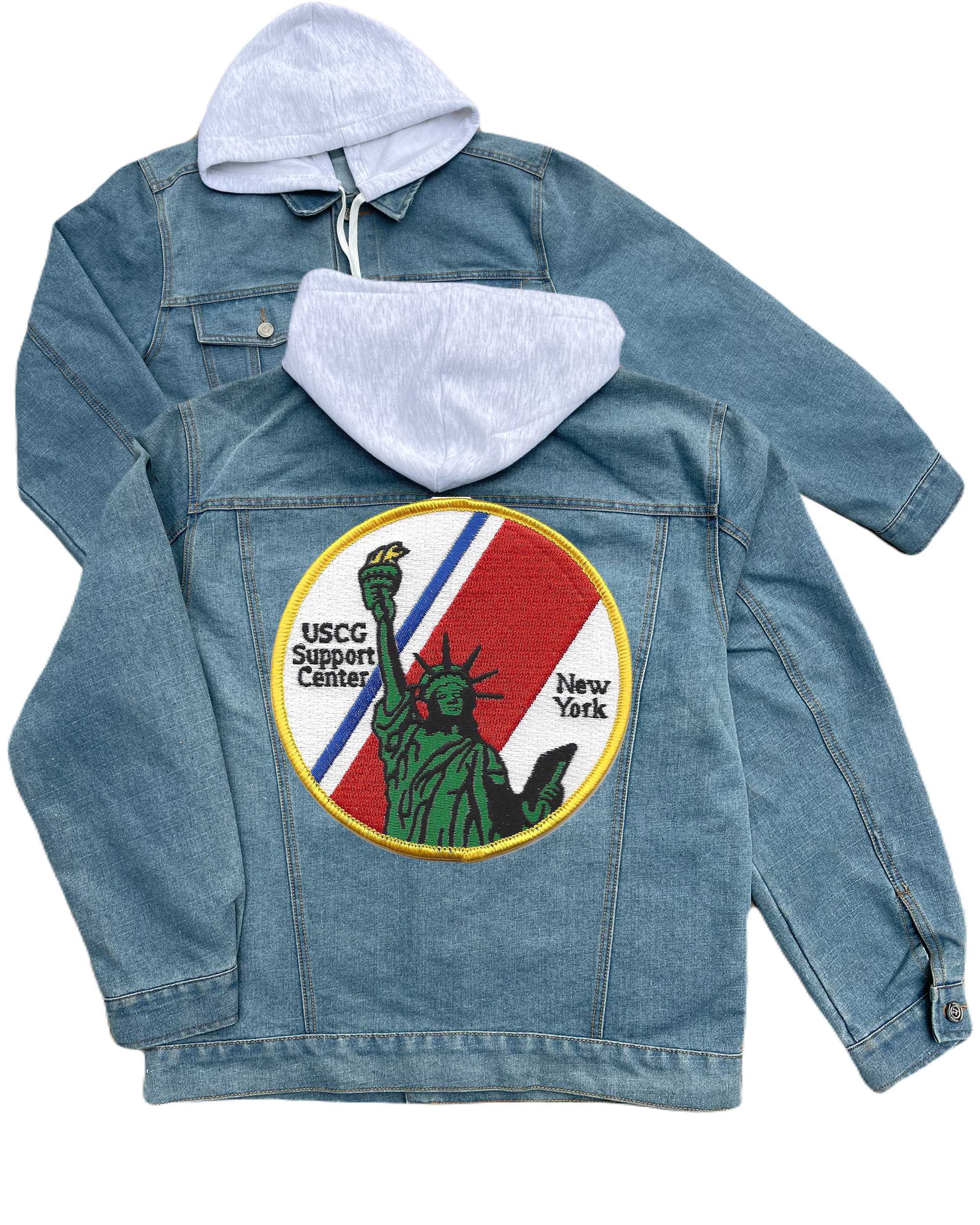 Us Coast Guard Support Center New York Embroidered Hood Jean Jacket