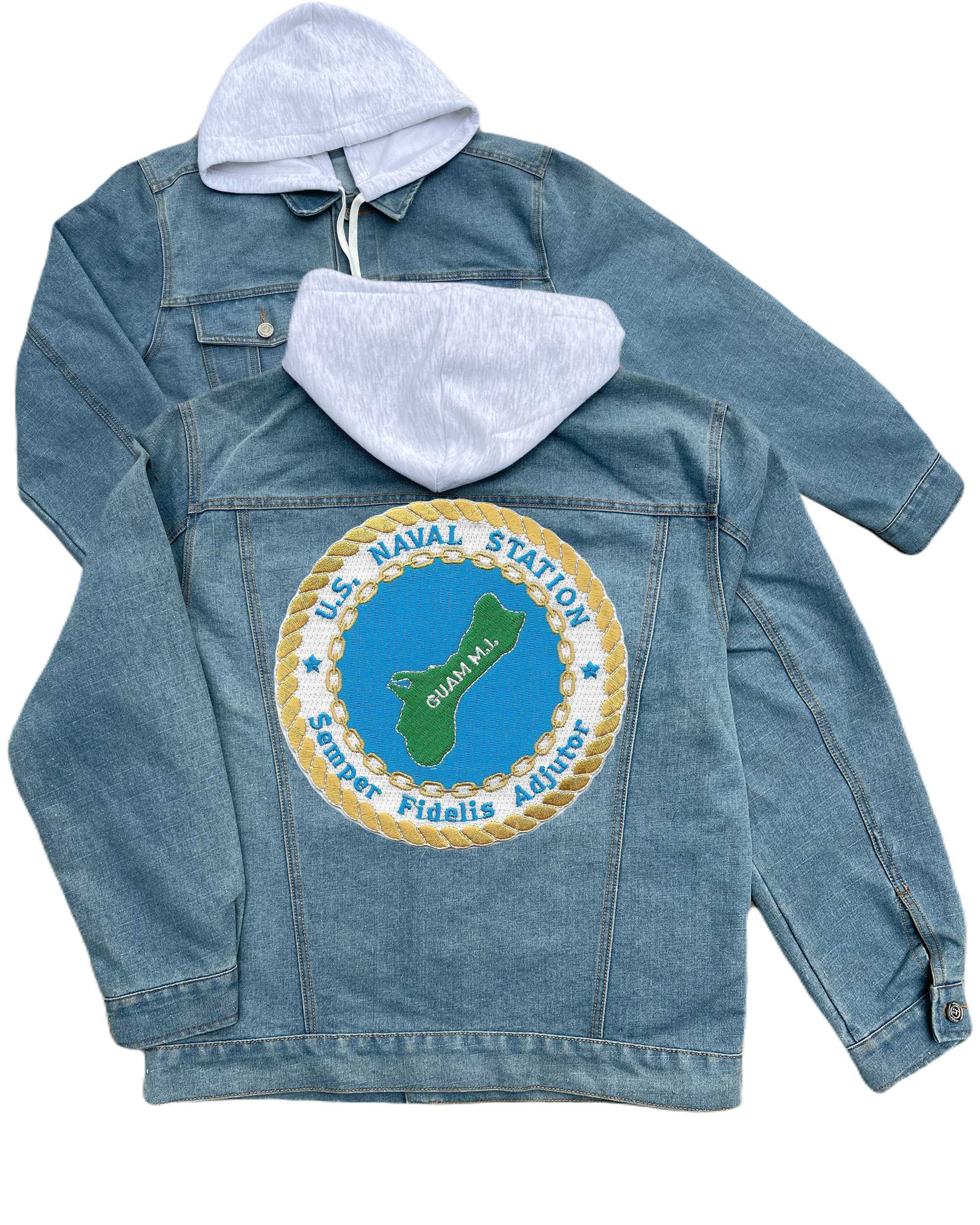 Us Naval Hospital Sigonella Sicily Italy Embroidered Hood Jean Jacket