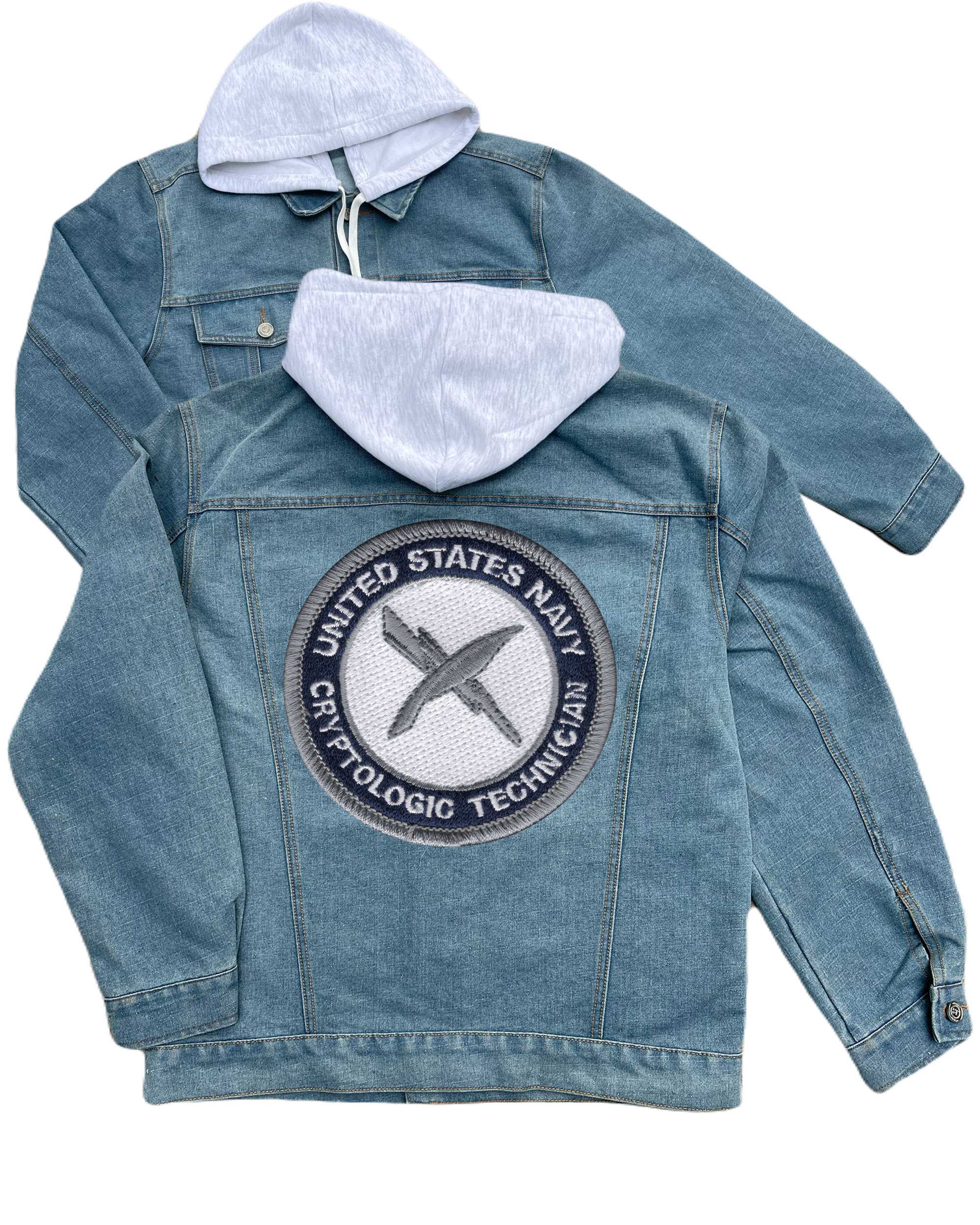 Us Navy Cryptologic Technician Ct Hat Embroidered Hood Jean Jacket
