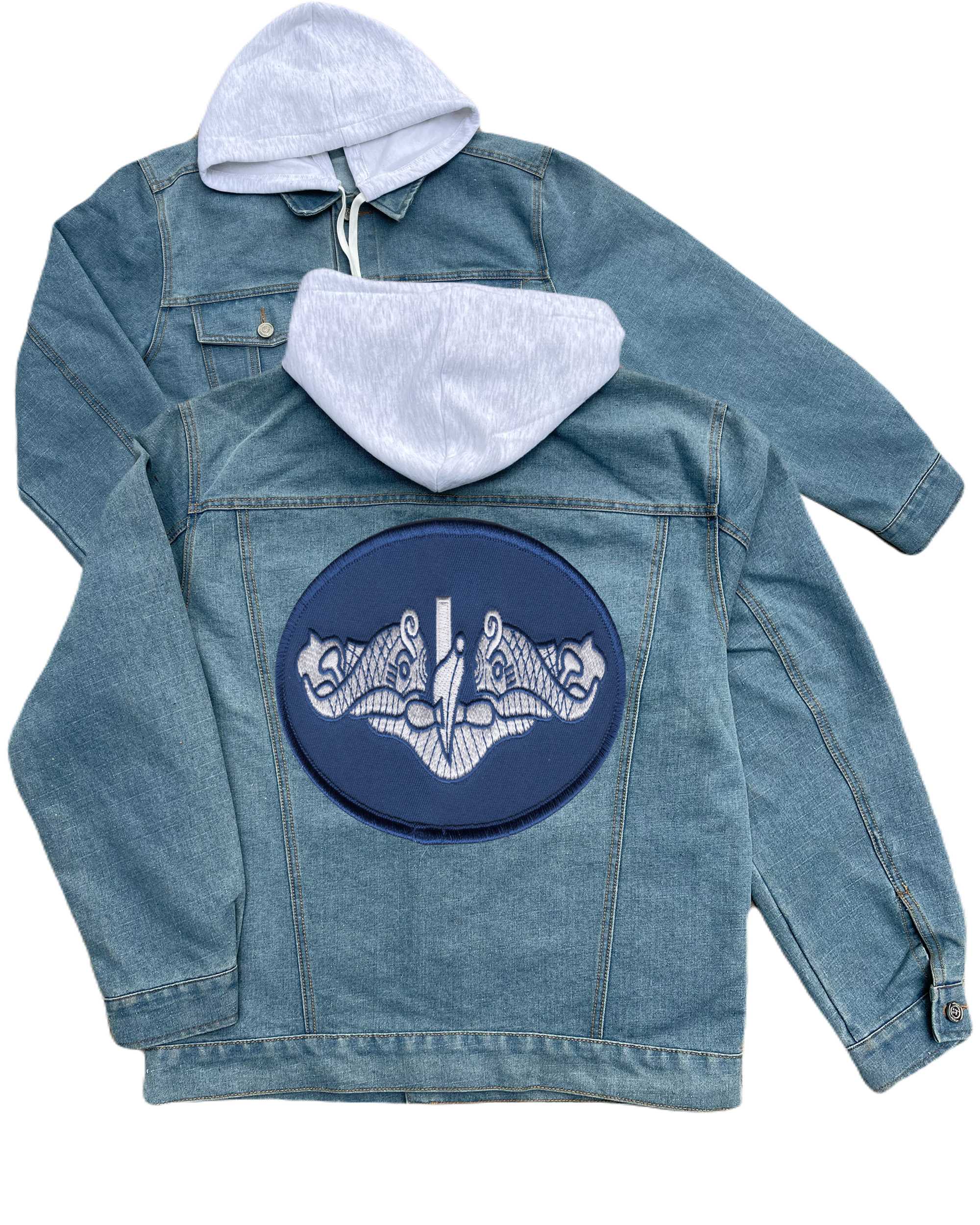 Us Navy Enlisted Submarine Qualification Insignia Large Dolphins Embroidered Hood Jean Jacket