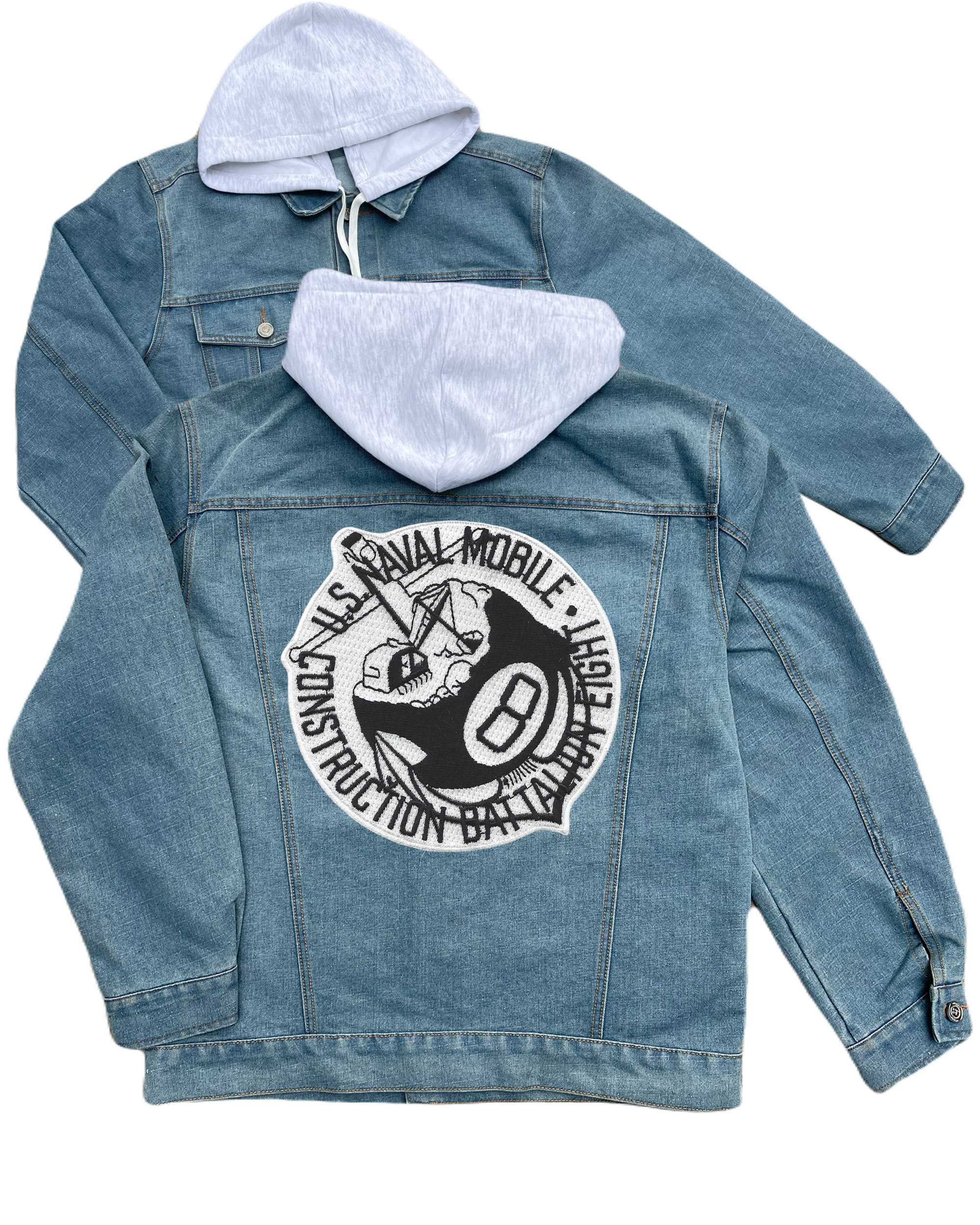 Us Nmcb 8 Black And White Embroidered Hood Jean Jacket
