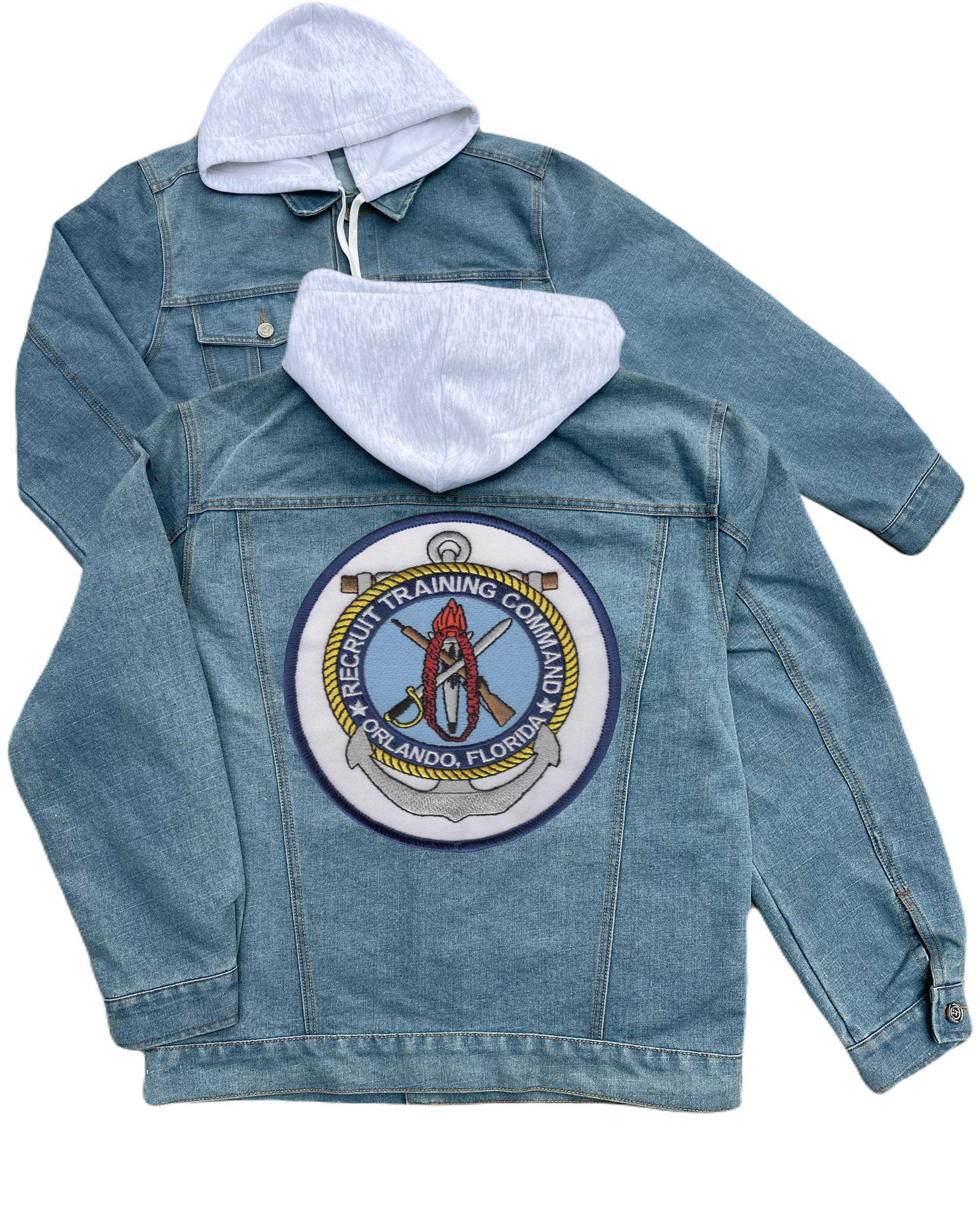 Us Recruit Training Command Orlando Florida Embroidered Hood Jean Jacket