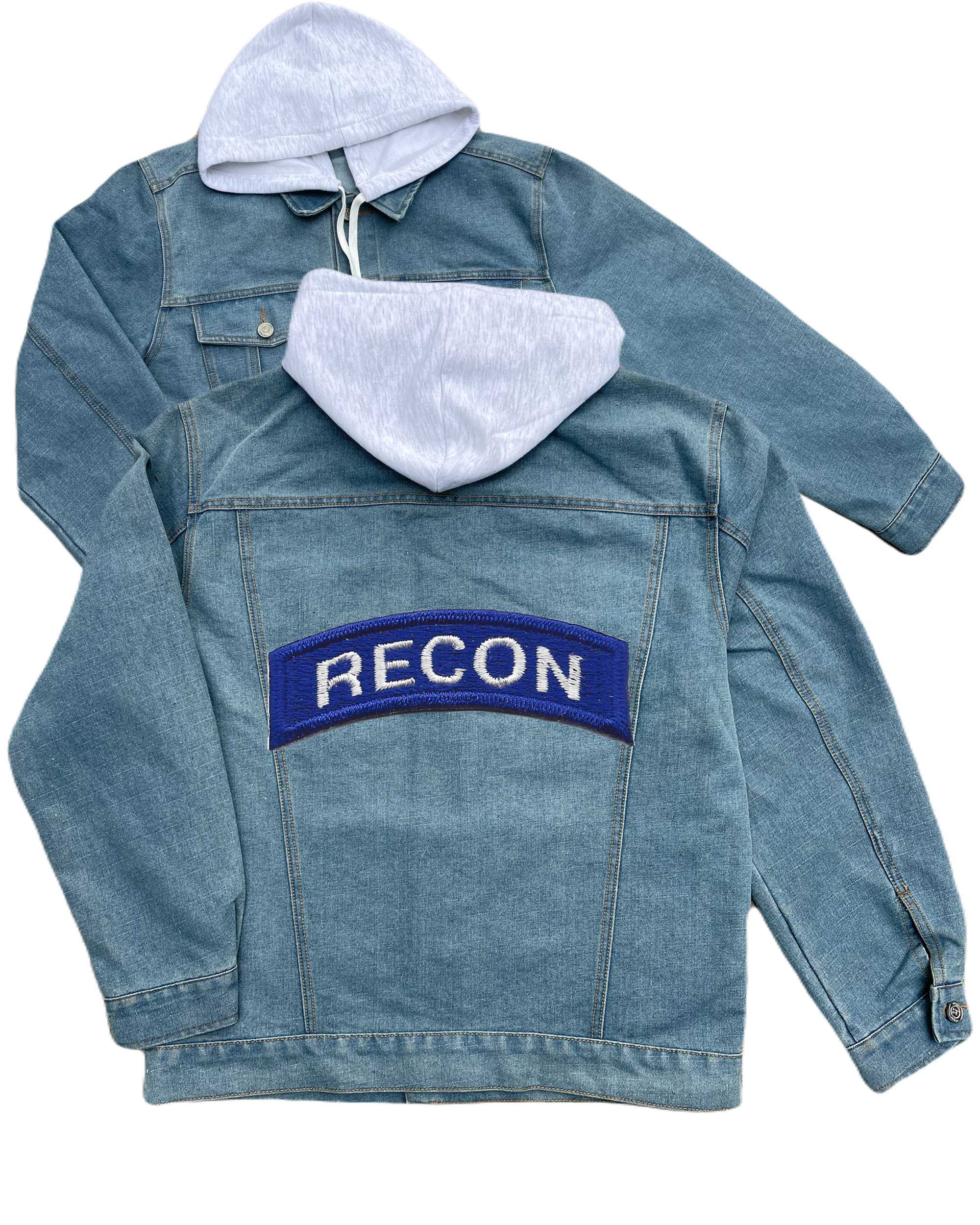 Us Special Forces Recon Rocker Blue Embroidered Hood Jean Jacket