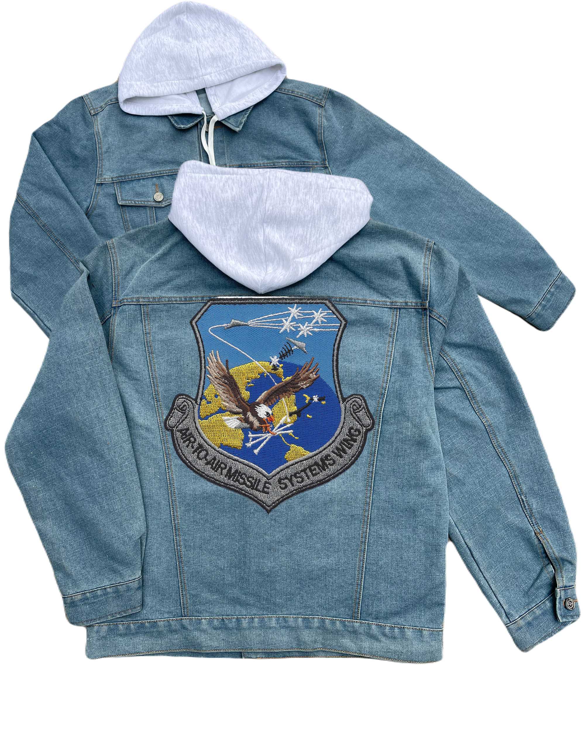 Usaf Air To Air Missile Systems Wing Embroidered Hood Jean Jacket