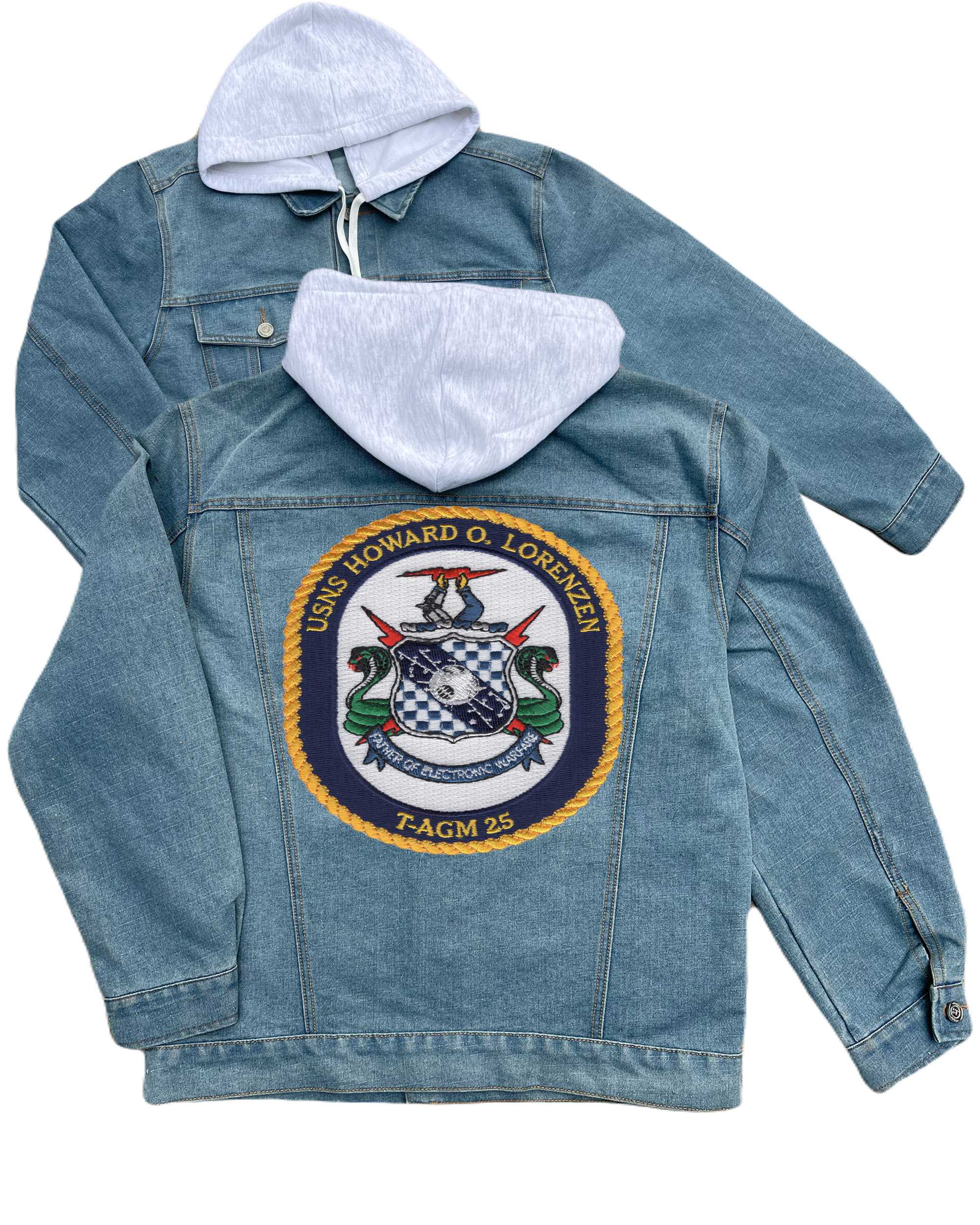 Usns Howard O Lorenzen T Agm 25 Missile Range Instrumentation Ship Embroidered Hood Jean Jacket