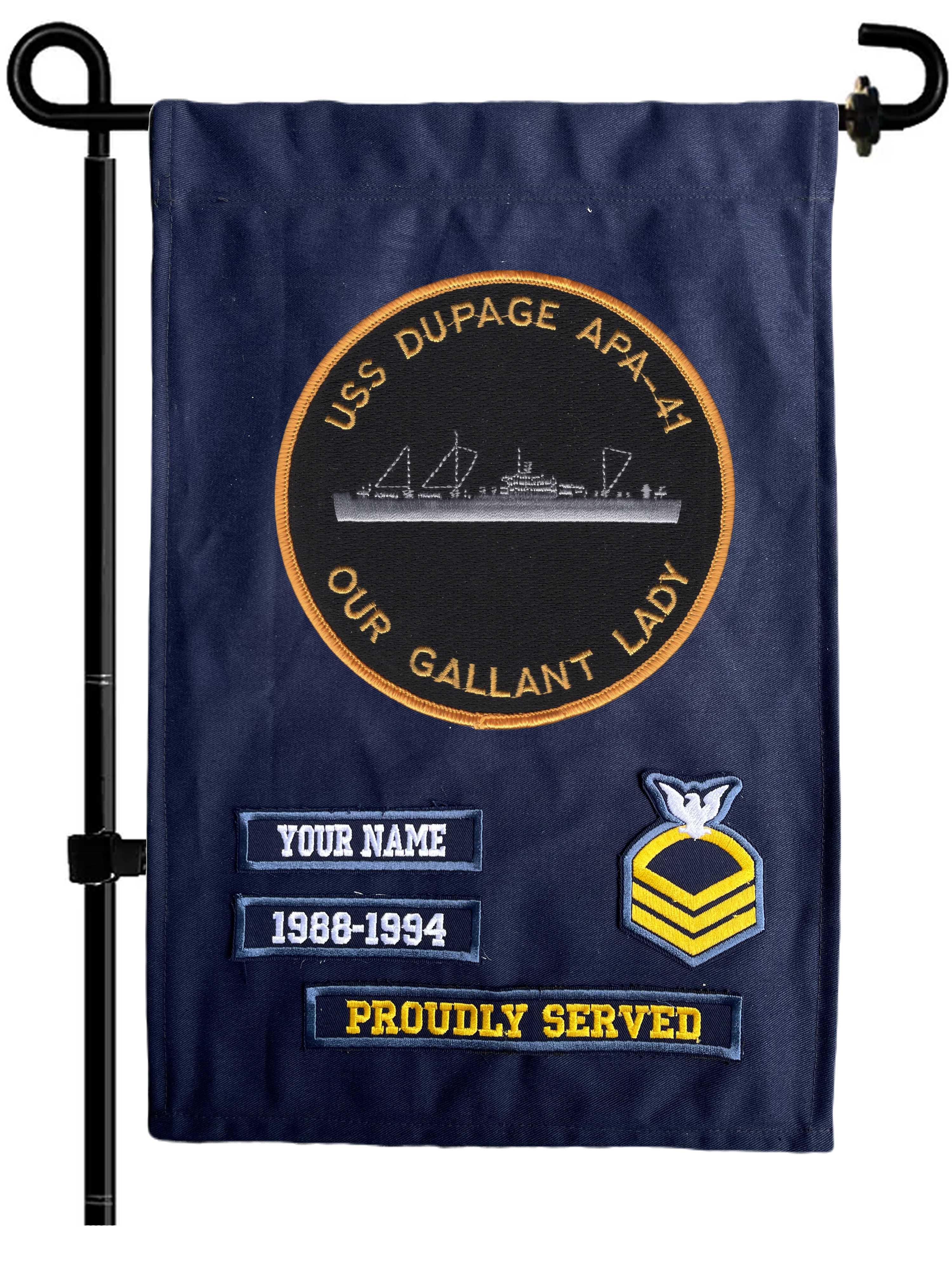 Custom Embroidered Door Banner – Garden Flag – Single sided – Size: 12” x 18 ” Please note your name, your rank, year of service…