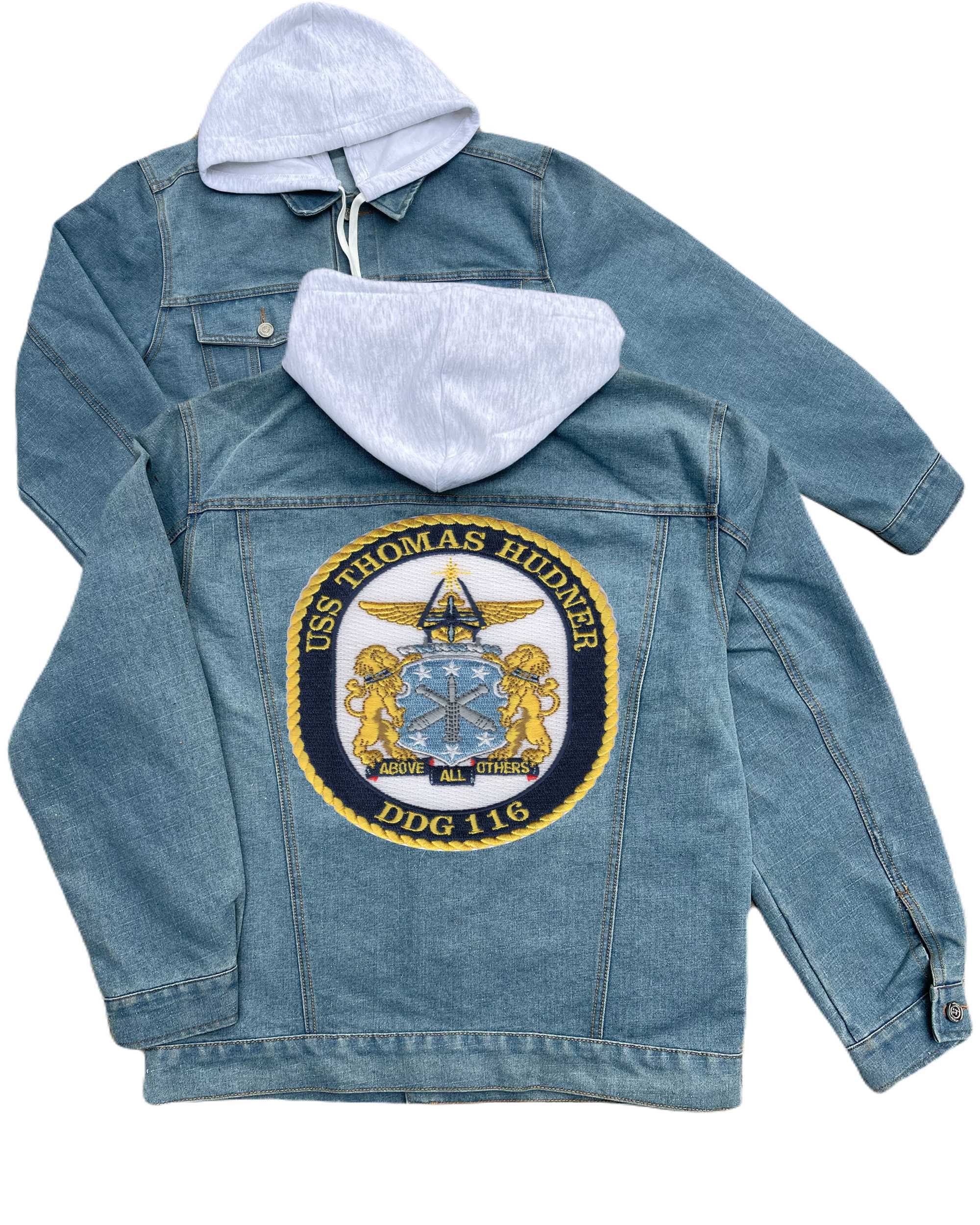 Uss Thomas Hudner Ddg 116 Guided Missile Destroyer Embroidered Hood Jean Jacket