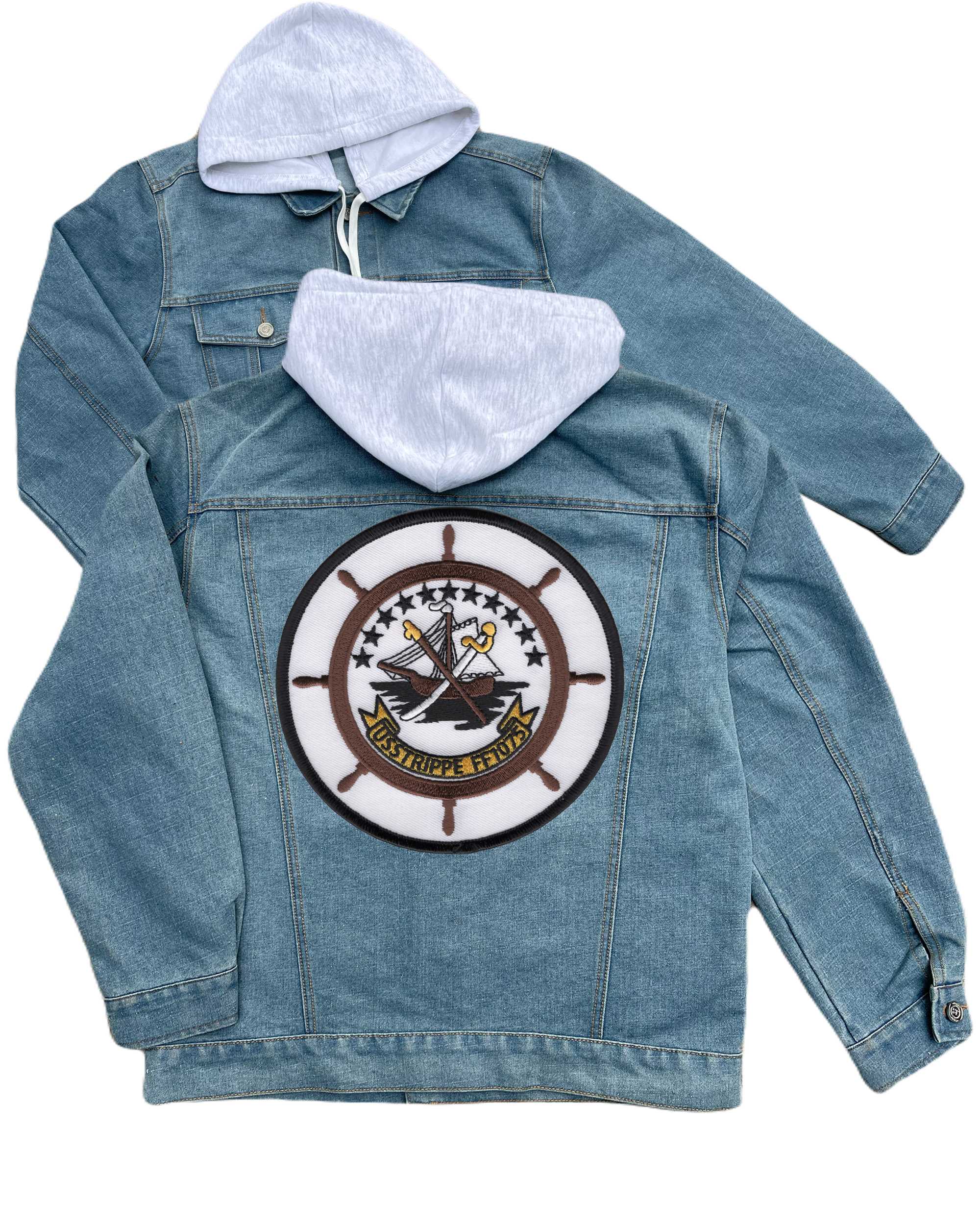 Uss Trippe Ff 1075 Embroidered Hood Jean Jacket